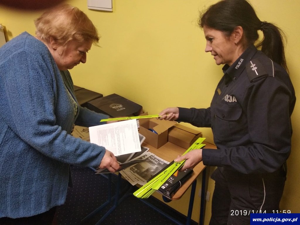 Następnie Kierownik Ruchu Drogowego KPP w Działdowie omówił zagrożenia dotyczące niechronionych uczestników ruchu drogowego, do której to grupy zaliczają się właśnie osoby starsze. Seniorzy dowiedzieli się m.in. jak ustrzec się przed niebezpieczeństwem w ruchu drogowym i na co zwrócić szczególną uwagę podczas przechodzenia przez jezdnię czy w miejscu zamieszkania. Na zakończenie tego bloku tematycznego seniorzy usłyszeli kilka cennych rad dotyczących elementów odblaskowych i ich nieocenionej roli w poprawie bezpieczeństwa użytkowników drogi. Szczególną uwagę poświęcono bezpieczeństwu osób pieszych należących do grupy tzw. niechronionych uczestników ruchu drogowego narażonych na poważne ryzyko utraty zdrowia, a nawet życia w przypadku zaistnienia zdarzenia drogowego z udziałem pojazdu.