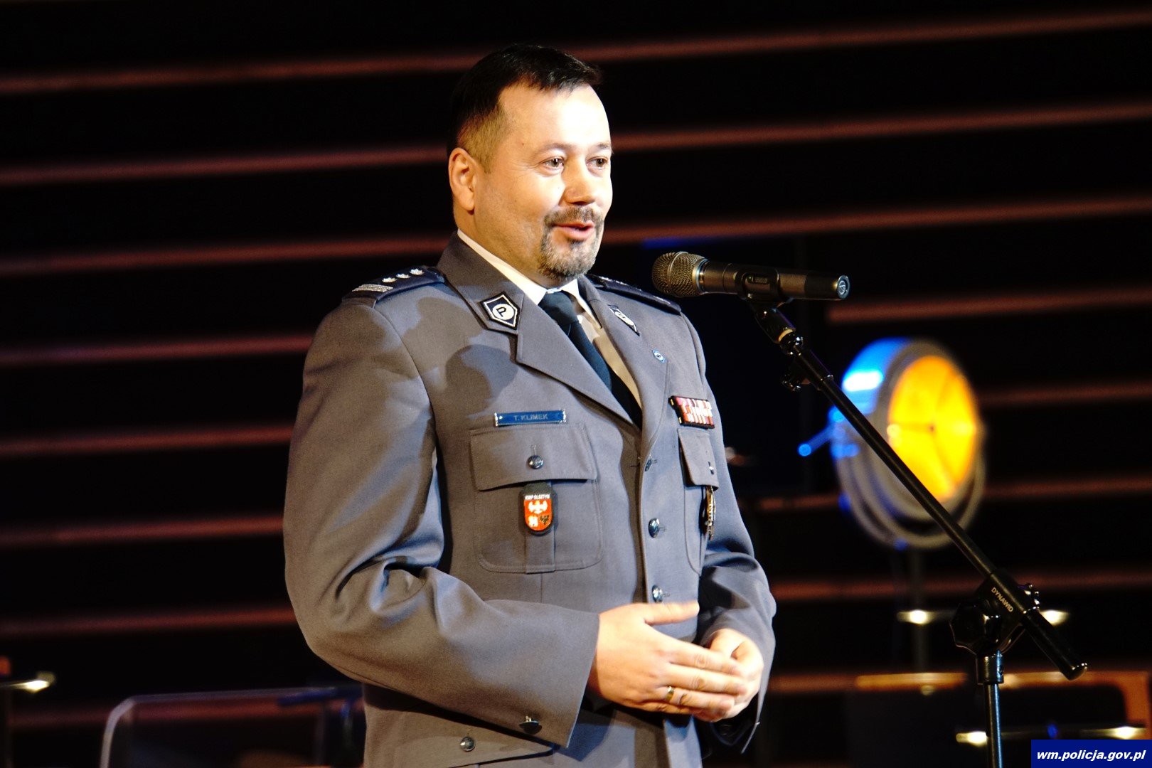 Pan Komendant Wojewódzki skierował do wszystkich Pań wspaniałe podziękowania i ogromnie serdeczne życzenia: zdrowia, pomyślności i satysfakcji we wszelkim działaniu oraz przeświadczenia, że to, czy będziemy czuli się w regionie bezpiecznie i mogli myśleć o rozwoju, zależy w ogromnej mierze właśnie od Pań. Wszystkiego dobrego z okazji Waszego Święta. Komendant przypomniał, że bieżący rok jest wyjątkowy dla polskiej Policji, która swoją służbę rozpoczęła 100 lat temu. Z tego powodu uznał, że tegoroczne Święto Kobiet powinno być podwójnie wyjątkowe. Komendant Podziękował za współorganizację koncertu Panu Wojewodzie, Panu Marszałkowi i Panu Przewodniczącemu. „Bez Was, szanowni Panowie, nie moglibyśmy tak pięknie podziękować naszym Paniom”.
