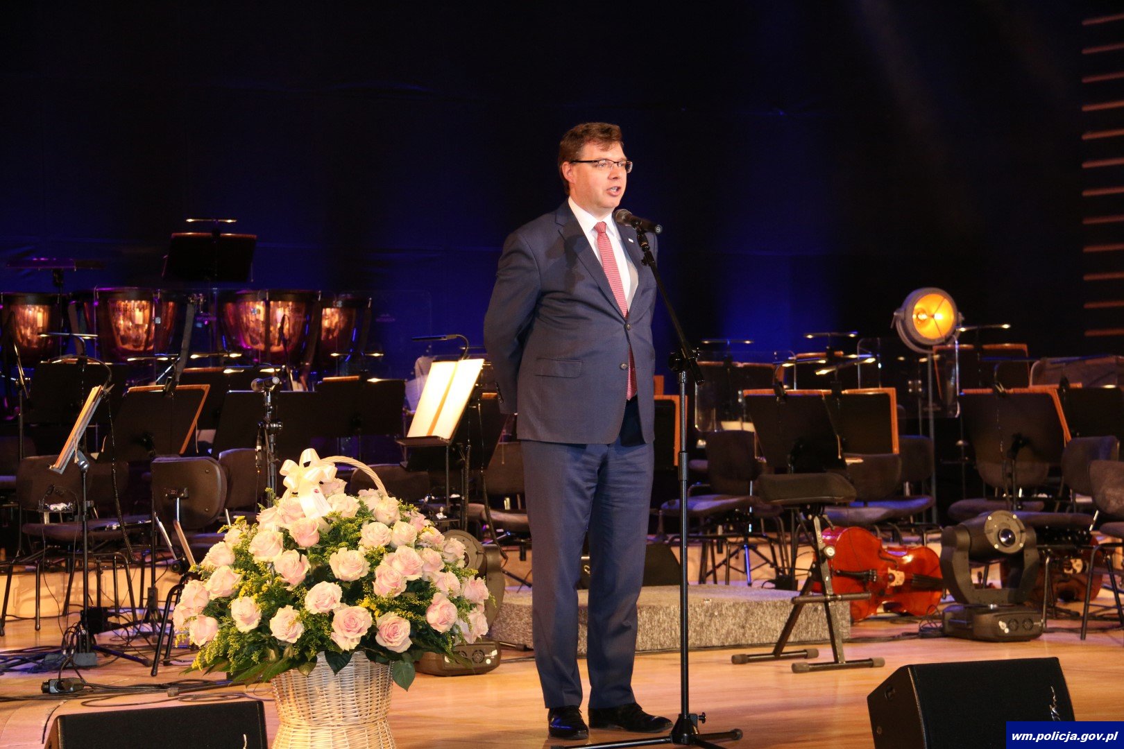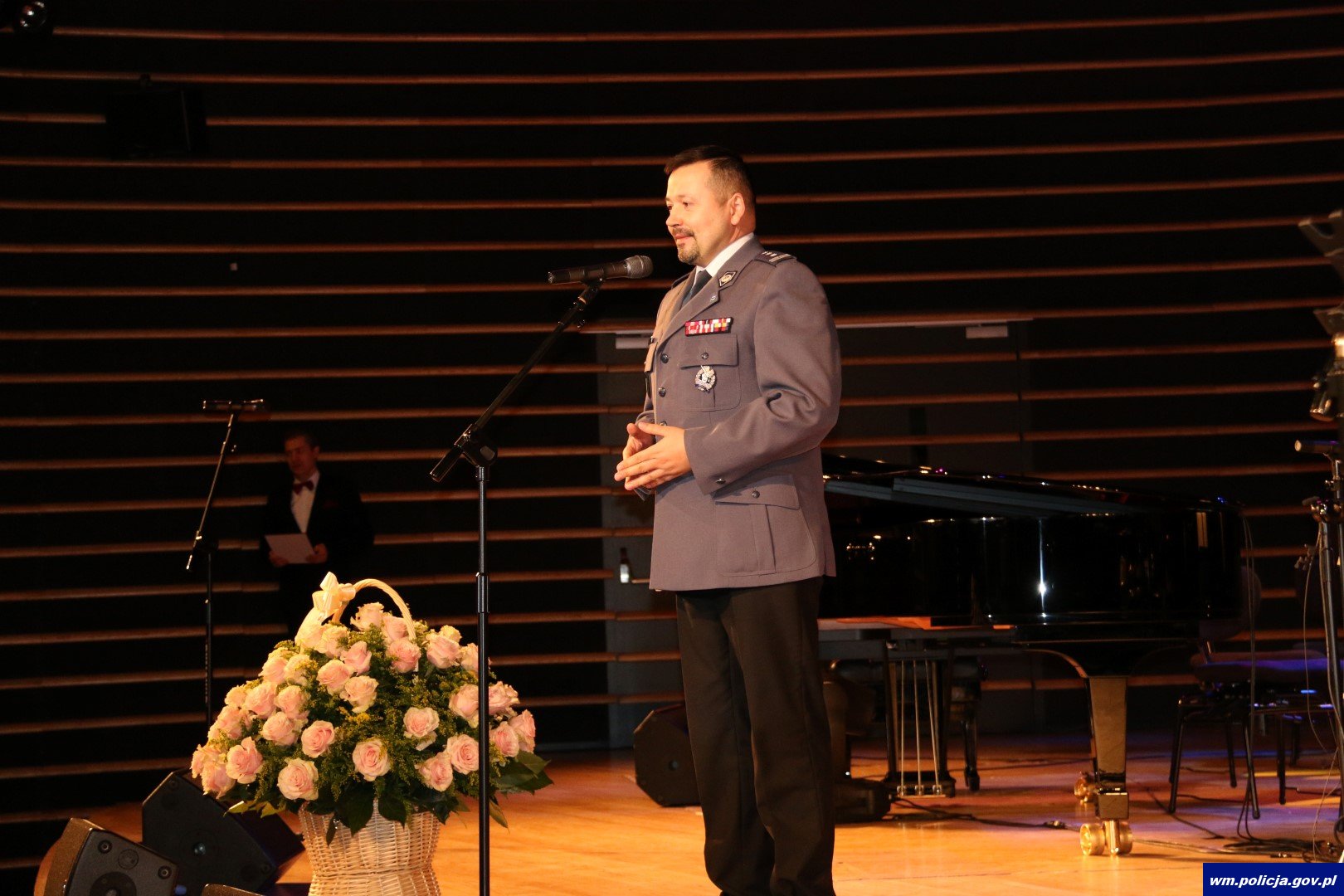 Pan Wojewoda podziękował, za możliwość udziału i wyraził podziw oraz wdzięczność i uznanie dla Pań, które pracują w warmińsko - mazurskiej Policji, ale także za ich obecność na wszystkich płaszczyznach życia. „Jesteście w swoich zadaniach i swojej obecności niezastąpione. Zarówno na polu rodzinnym, ale także zawodowym i społecznym. Ja dzisiaj na sali nie widzę Pań Policjantek, ale widzę piękne kobiety, które ubogacają, upiększają nasz świat. Które swoją pracą, swoim życiem stanowicie tą piękniejszą cząstkę naszej społeczności. W tym dniu chciałbym życzyć Paniom abyście miały nieustającą satysfakcję z tego co wykonujecie zarówno w życiu rodzinnym, jak i w życiu zawodowym i na innych polach, na których realizujecie swoje pasje swoje hobby, w których realizujecie siebie jako kobiety. Drogie Panie, życzę Wam, aby ten koncert, to dzisiejsze artystyczne i duchowe doznanie przyniosło Wam radość, przyniosło Wam uśmiech na twarzy, abyście mogły ten dzień dzisiejszy świętować, ale żeby każdy dzień Waszego życia, każdy dzień roku był jednym wielkim świętem Waszej kobiecości. Wszystkiego dobrego”.