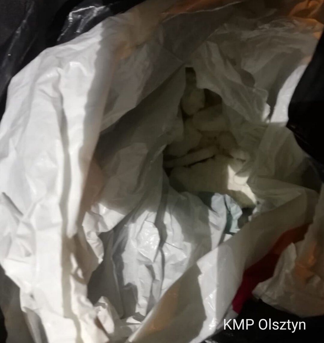 Podczas patrolowania osiedlowych uliczek w rejonie ul. Dworcowej w Olsztynie, policyjni wywiadowcy zainteresowali się stojącym na poboczu osobowym autem na iławskich numerach rejestracyjnych. Gdy policjanci podeszli do pojazdu poczuli wyraźny zapach marihuany. W związku z tym wylegitymowali znajdującego się w aucie kierowcę. 32-latek wyjął z pudełka po papierosach i przekazał funkcjonariuszom foliowy woreczek, w którym ukryty był susz. Podczas przeszukania pojazdu, policjanci znaleźli kolejne partie narkotyków, tym razem był to zbrylony biały proszek ukryty w reklamówce pod fotelem pasażera.