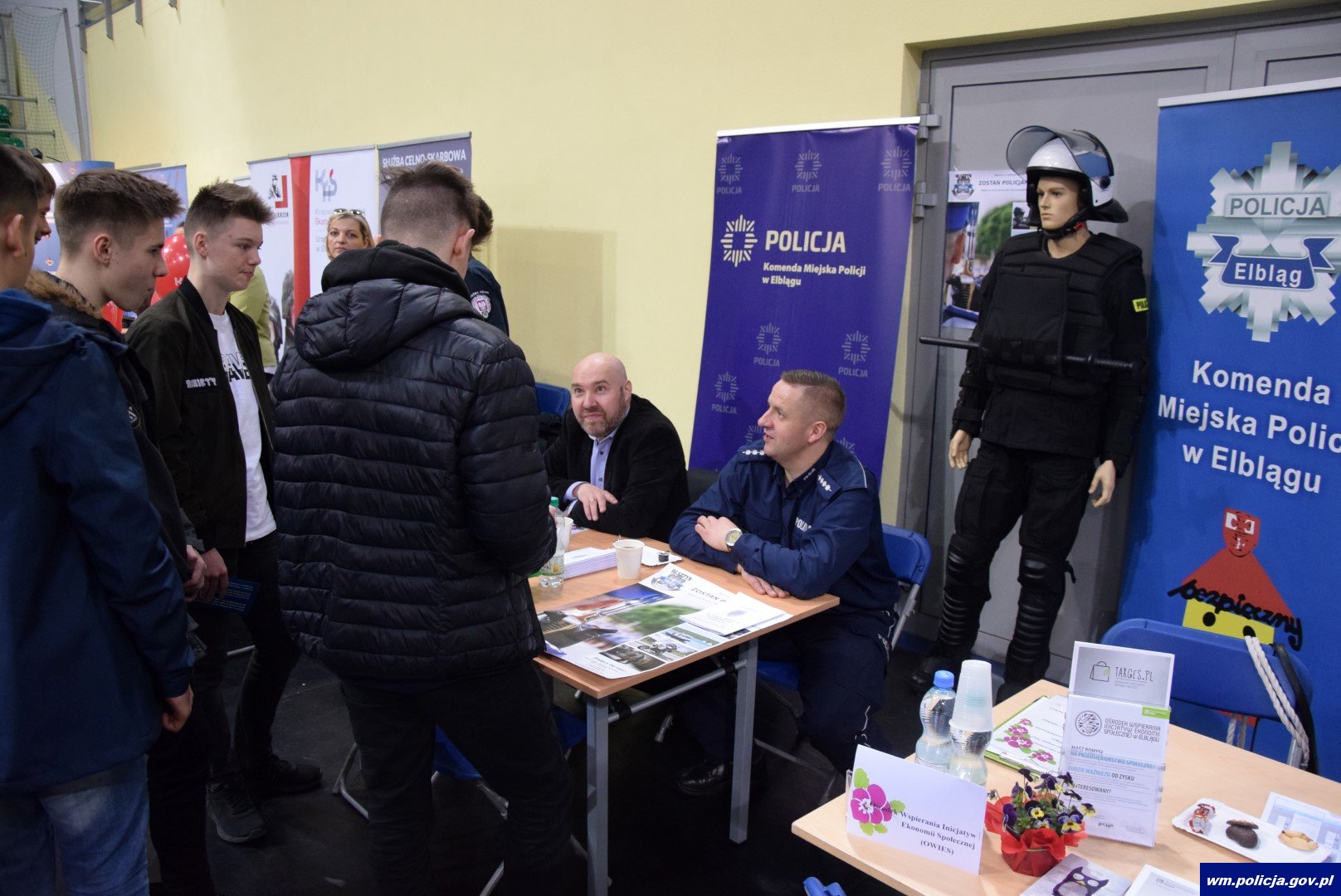 Stoisko informacyjne dla osób zainteresowanych wstąpieniem w szeregi Policji, cieszyło się sporym zainteresowaniem, szczególnie wśród młodych osób odwiedzających targi. Policjanci z Elbląga zapraszają do wstąpienia w szeregi. Aktualnie wolnych jest 13 etatów policyjnych - dla tych, którzy posiadają predyspozycję i chcą nieść pomoc innym.