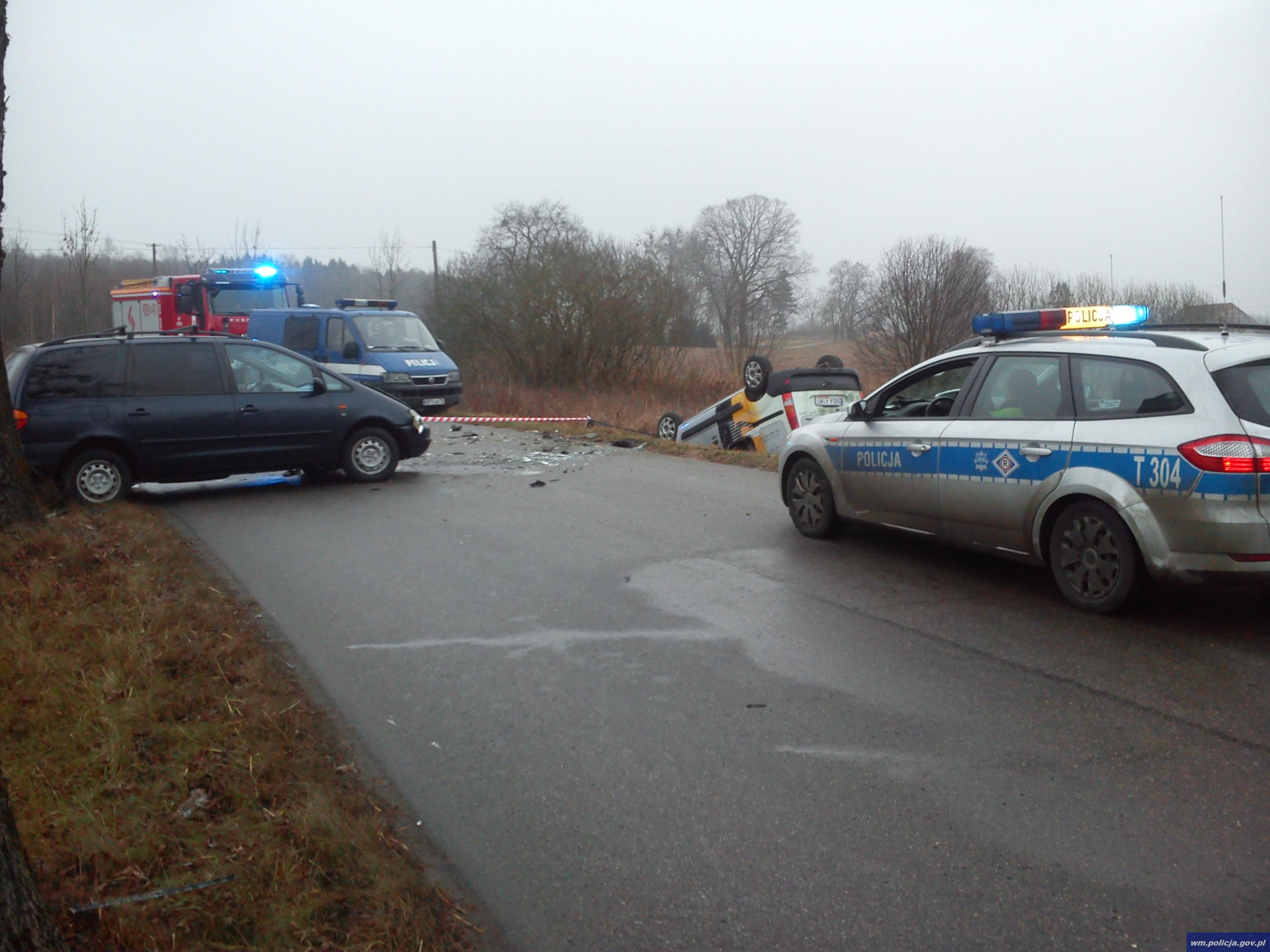 W sobotę tuż przed godziną 7.00 oficer dyżurny bartoszyckiej jednostki policji otrzymał zgłoszenie, że na trasie Wiatrowiec- Sępopol doszło do zderzenia dwóch samochodów osobowych. Na miejsce od razu pojechali policjanci. Na drodze panowały złe warunki. Nawierzchnia była oblodzona. Ze wstępnych ustaleń policjantów wynika, że kierujący osobowym volkswagenem 35-letni mieszkaniec Sępopola nie dostosował prędkości do warunków drogowych, wpadł w poślizg, zjechał na przeciwległy pas drogi i zderzył się z jadącym z naprzeciwka osobowym renault. Na skutek uderzenia renault dachowało w przydrożnym rowie.