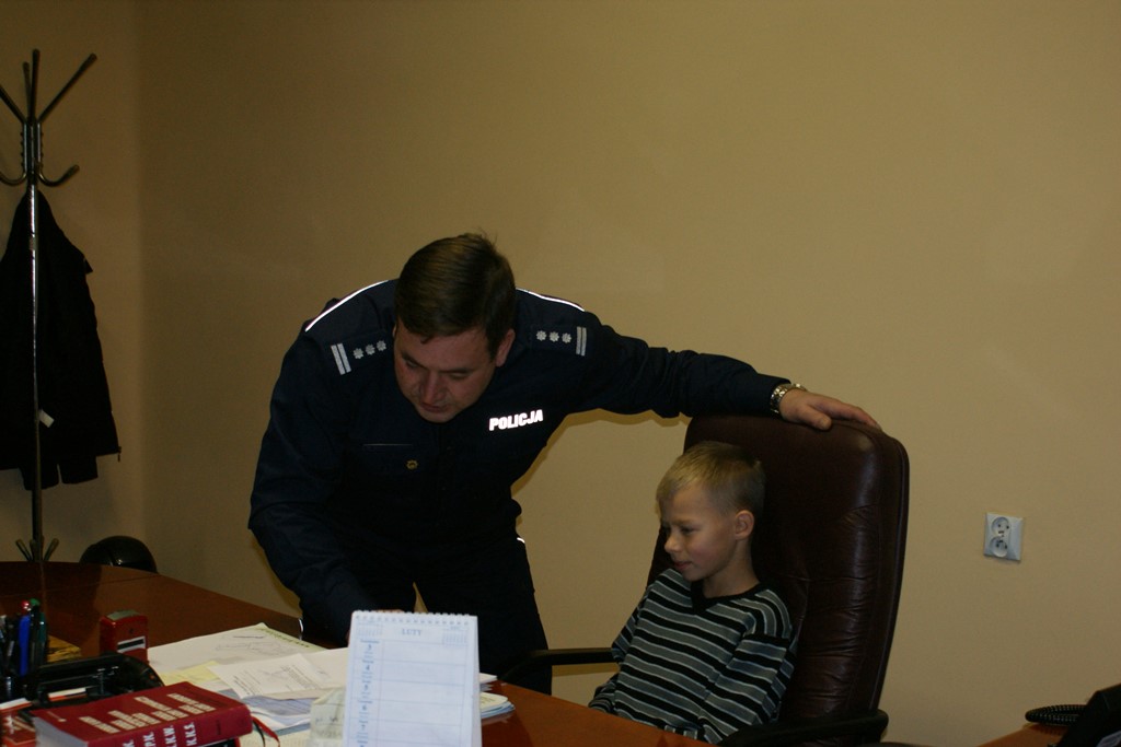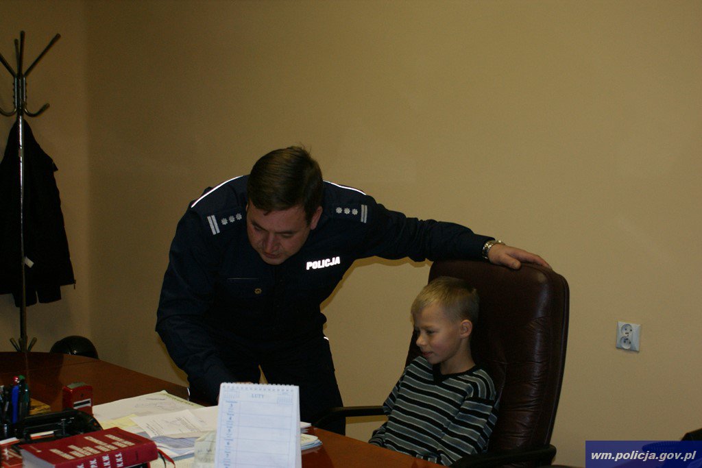 Przygoda chłopca rozpoczęła się w szkole, gdy przyjechali po niego funkcjonariusze. Krzyś nie krył swojego szczęścia, a przede wszystkim zaskoczenia. Służbę rozpoczął oznakowanym radiowozem patrolując drogę z Kozłowa do Nidzicy. Po przybyciu do jednostki chłopiec mógł zobaczyć jak pracuje oficer dyżurny na stanowisku kierowania. Przysłuchiwał się korespondencji radiowej dyżurnego po czym sam miał okazję przez chwilę porozmawiać przez stację. Honorowy policjant zwiedzał cele dla zatrzymanych oraz tzw. pomieszczenie przejściowe. Jedną z największych dla niego atrakcji, jak powiedział później, był pokaz broni służbowej. Krzyś mógł zobaczyć w jaką broń są wyposażeni policjanci zabezpieczający imprezy masowe lub biorący udział w działaniach specjalnych. Chłopczyk pracował również z policjantami ruchu drogowego. Zapoznał się z wyposażeniem nieoznakowanego radiowozu oraz zobaczył jak działa wideorejestrator. Technik kryminalistyki przygotował również wiele atrakcji. Krzyś uczył się różnych technik zabezpieczania śladów przy pomocy specjalistycznego sprzętu. Na sam koniec chłopiec odwiedził komendanta w jego gabinecie. Zasiadając w fotelu komendanckim mógł przez chwilę poczuć się szefem jednostki. Dzień służby minął Krzysiowi bardzo pracowicie. Na pamiątkę spotkania insp. Witold Barcikowski wręczył dyplom Honorowego Policjanta oraz torbę z upominkami. Dzięki hojności nidzickiego burmistrza, osób prywatnych oraz nidzickich sklepów, Krzyś otrzymał jeszcze wiele prezentów i pamiątek. Humor, dobre samopoczucie oraz uśmiech chłopca były dla wszystkich potwierdzeniem tego, że warto próbować spełniać marzenia.