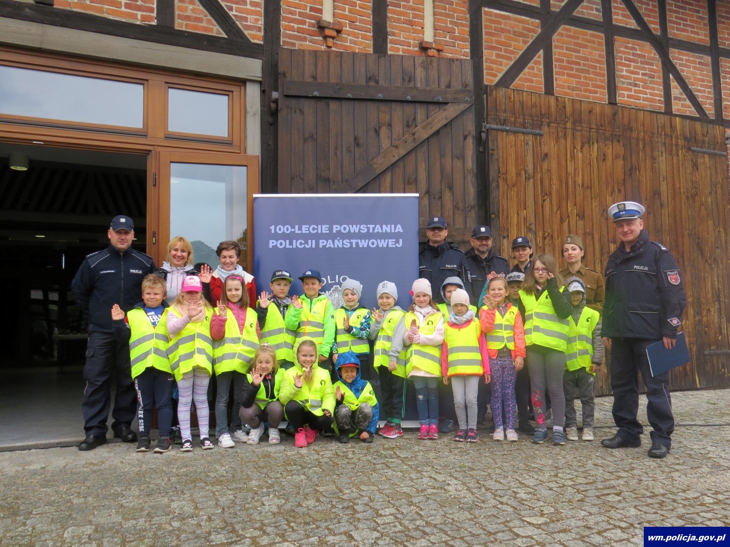 Dzisiaj (10.05.2019r.) przez kilka przedpołudniowych godzin, uczniowie klas piątych dobromiejskich szkół podstawowych, brali udział w grze miejskiej, którą zorganizowali policjanci z Komendy Wojewódzkiej Policji w Olsztynie z okazji Wojewódzkich Obchodów Światowego Tygodnia Bezpieczeństwa w Ruchu Drogowym. Olsztyńscy funkcjonariusze chcieli połączyć tę uroczystość z edukowaniem młodych ludzi nie tylko w obszarze ruchu drogowego. Spotkanie w Dobrym Mieście miało dla policjantów jeszcze jeden ważny aspekt, a mianowicie uczczenie 100-lecia powołania Policji, jako formacji dbającej o szeroko pojęte bezpieczeństwo.