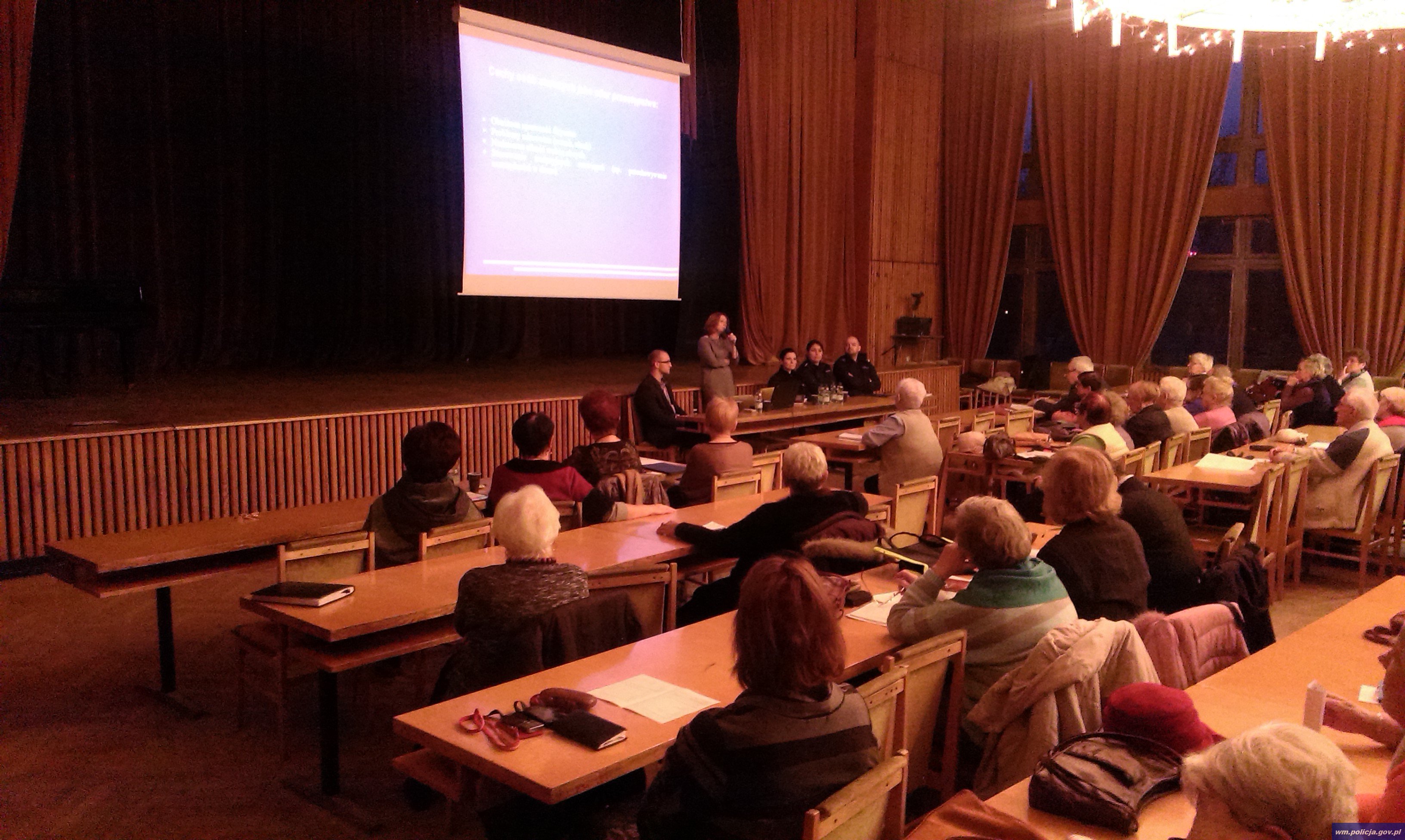W auli Uniwersytetu Warmińsko – Mazurskiego Komenda Miejska Policji w Olsztynie przeprowadziła debatę społeczną poświęconą bezpieczeństwu osób starszych. Omówiono przede wszystkim ryzyko związane z zawieraniem umów finansowych oraz z korzystaniem z usług finansowych, które nie podlegają szczególnemu nadzorowi państwa.