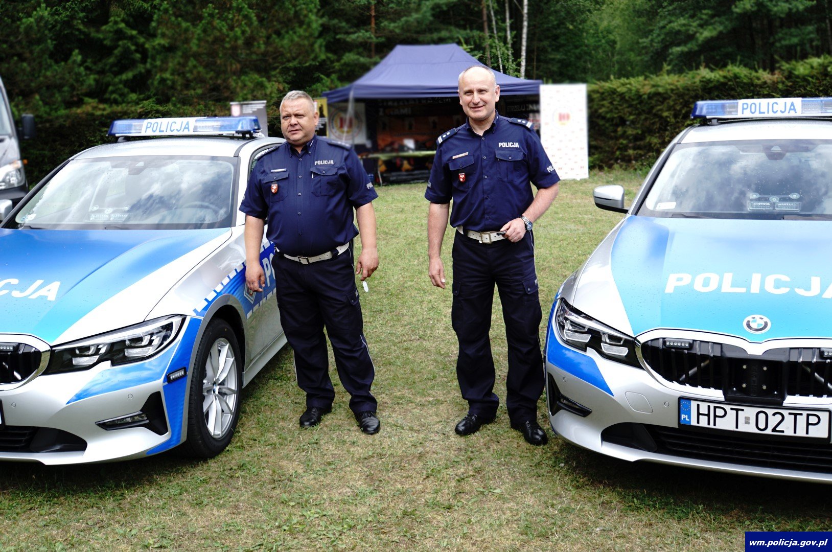 st. asp. Jarosław Bojarowicz i mł. insp. Mariusz Tański z WRD KWP w Olsztynie obok nowych radiowozów -