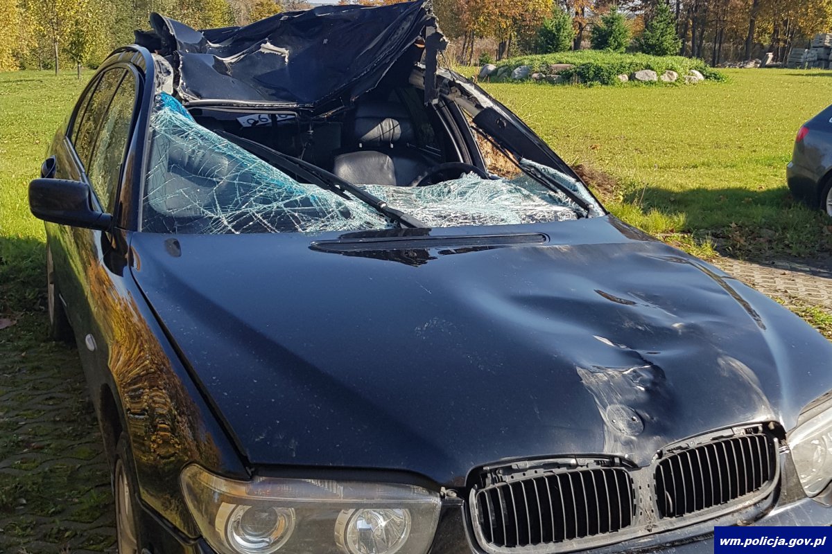 Policjanci z Braniewa pracowali na miejscu zdarzenia drogowego, do którego doszło na trasie Braniewo-Grzechotki. Przed jadące BMW wtargnęły dwa łosie. Jedno ze zwierząt wpadło do wnętrza samochodu. Kierujący 25-latek z obrażeniami ciała trafił do szpitala. Policjanci apelują do wszystkich podróżujących o zachowanie szczególnej ostrożności w rejonach narażonych na wtargnięcie leśnej zwierzyny!