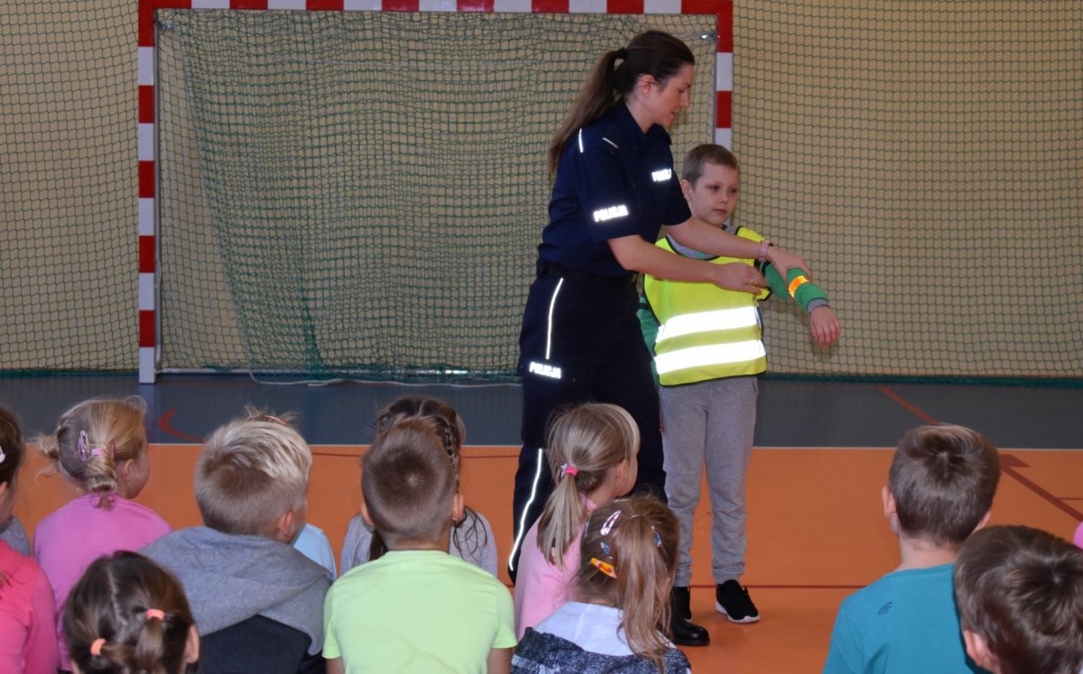 Dodatkowo najmłodsi słuchacze dowiedzieli się również, jak ważne jest używanie elementów odblaskowych i na jakiej zasadzie odblaski „działają”. Policjanci przypomnieli także jak niebezpieczne mogą być kontakty z osobami obcymi zaznaczając jednocześnie, aby o takim spotkaniu każdorazowo informowały dorosłych. Ponadto maluchy podczas spotkania poznały algorytm zachowania się w przypadku zauważenia niewiadomego pochodzenia przedmiotu w postaci: plecaka, torby, paczki oraz podczas spotkania z nieznanym psem.
