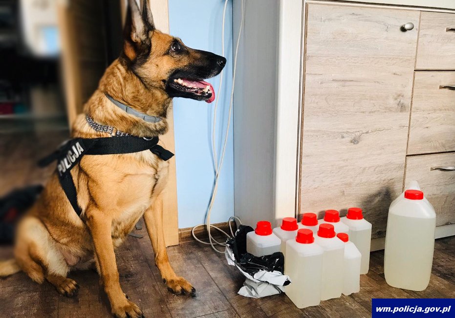 Olsztyńscy policjanci zatrzymali 43-latka podejrzewanego o posiadanie znacznej ilości substancji zabronionych. Łącznie funkcjonariusze znaleźli i zabezpieczyli blisko 13 litrów płynu GBL, z którego można było przygotować około 13 tysięcy działek dealerskich substancji potocznie nazywanej „pigułką gwałtu”. Policyjny pies biorący udział w interwencji wytropił również marihuanę i grzyby halucynogenne. Mężczyźnie grozi kara do 10 lat pozbawienia wolności.