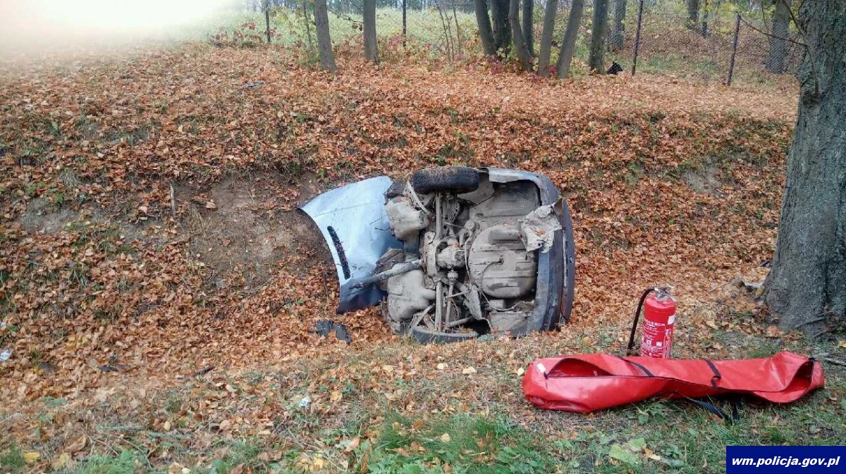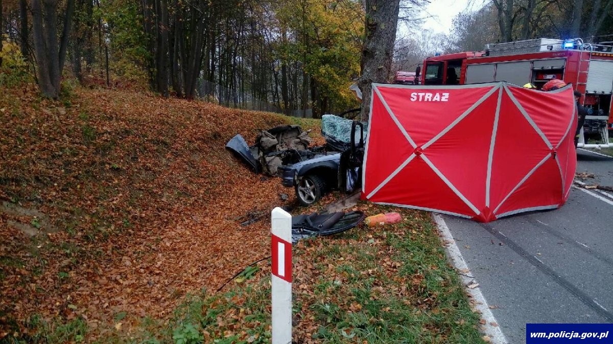 Do wypadku doszło wczoraj( 24.10.2019) około godziny 12.00 na trasie Mrągowo-Wymysły. Na łuku drogi kierowca stracił panowanie nad samochodem, zjechał na przeciwległy pas ruchu i uderzył w drzewo. Siła z jaką auto uderzyło w drzewo była tak duża, że pojazd został rozerwany na dwie części. Mężczyzna poniósł śmierć na miejscu. Policjanci pracujacy na miejscu zdarzenia ustalili, że kierowca miał cofnięte uprawnienia do kierowania pojazdami, a auto nie miało ważnych badań technicznych. Na czas wykonywanych czynności na miejscu zdarzenia droga była całkowicie zablokowana, a policjanci zorganizowali objazdy.