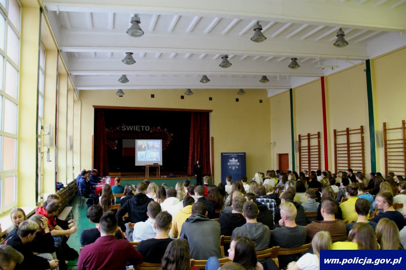 Wykorzystując specjalnie przygotowaną na to spotkanie prezentację, podinsp. Sławomir Kołpacki omówił stan bezpieczeństwa na drogach powiatu iławskiego dodając, że 22,7 % zdarzeń drogowych powodują kierowcy w wieku 18-24 lata. Następnie oficer prasowy zaprezentowała wybrane przykłady zdarzeń drogowych spowodowanych przez młodych kierowców dodając, jakie były ich przyczyny i jak można uniknąć takich zdarzeń. Omówiła jak klasyfikowane są różne działania naruszające prawo i jaka grozi za nie kara. Podała liczne przykłady ze swojej pracy, obrazujące jak często jazda niezgodnie z podstawowymi zasadami ruchu drogowego oraz na tzw. „podwójnym gazie” czy pod wpływem narkotyków prowadzi do nieszczęść, za które ktoś później odpowiada przed sądem.