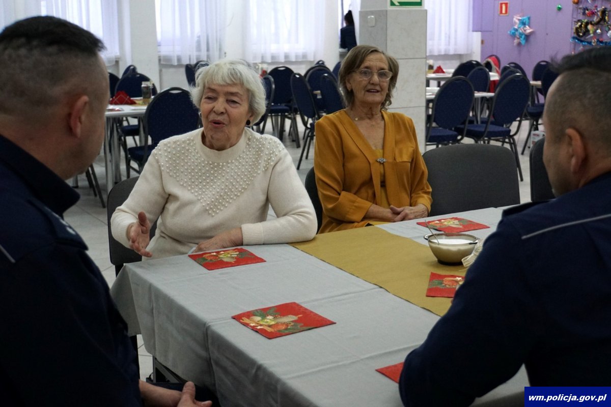 Szef warmińsko-mazurskich policjantów nie zakończył jednak na tym swojej wizyty w powiecie braniewskim. Wśród seniorów wyróżnionych za stworzenie hasła na potrzeby projektu, znalazły się także dwie panie, które ze względy na swój stan zdrowia nie mogły wziąć udziału w gali. Dlatego nadinsp. Tomasz Klimek podjął decyzję, że osobiście i w towarzystwie nadkom. Tadeusza Telengi Komendanta Powiatowego Policji w Braniewie odwiedzi 84-letnią Zofię Dorawę i 72-letnią Barbarę Tupko, podopieczne Fundacji Żółty Szalik we Fromborku. Podczas spotkania obie panie otrzymały upominki od komendantów i odwdzięczyły się im ciepłą herbatą, słodkim poczęstunkiem i bardzo miłą rozmową.
