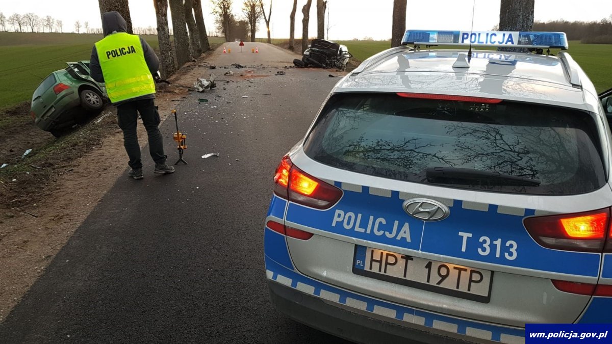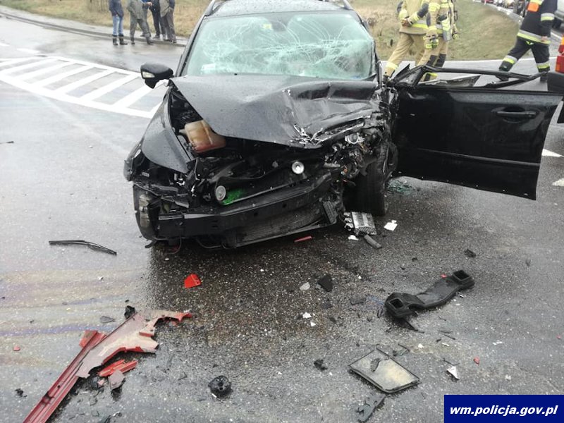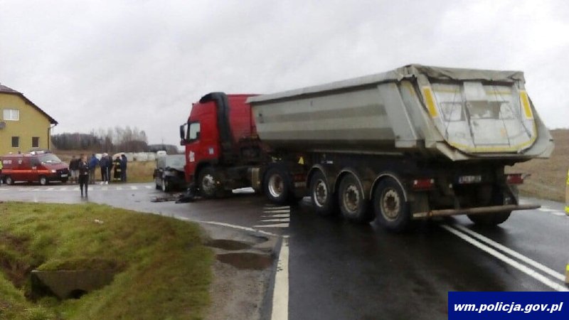 Iławscy policjanci zostali poinformowani o wypadku w okolicach miejscowości Rożental. Funkcjonariusze natychmiast pojechali na miejsce. Okazało się, że 59-latek kierujący zespołem pojazdów nie zachował szczególnej ostrożności przed poprzedzającym samochodem osobowym skręcającym w lewo i celem uniknięcia najechania na jego tył zjechał na lewą stronę drogi powodując zderzenie czołowe z prawidłowo jadącym volvo. W wyniku zdarzenia kierujący i pasażerka z poważnymi obrażeniami zostali przetransportowani do szpitala.