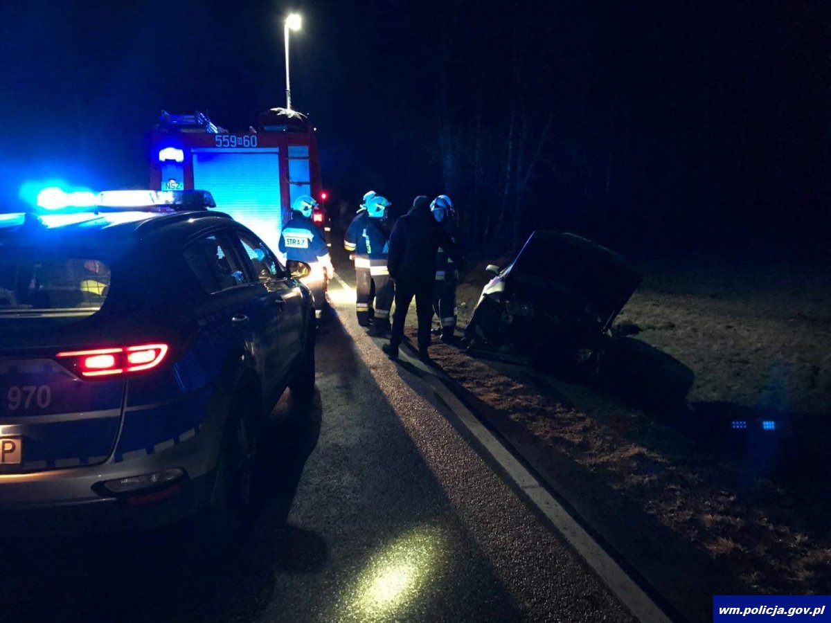 W piątek (21.02.2020r.) około godz. 22:00 oficer dyżurny szczycieńskiej jednostki otrzymał telefoniczne zgłoszenie, z którego wynikało, że na trasie Kokoszki - Spychowo doszło do zdarzenia drogowego z udziału pojazdu marki Golf. Na miejsce natychmiast pojechali policjanci szczycieńskiej „drogówki”.
