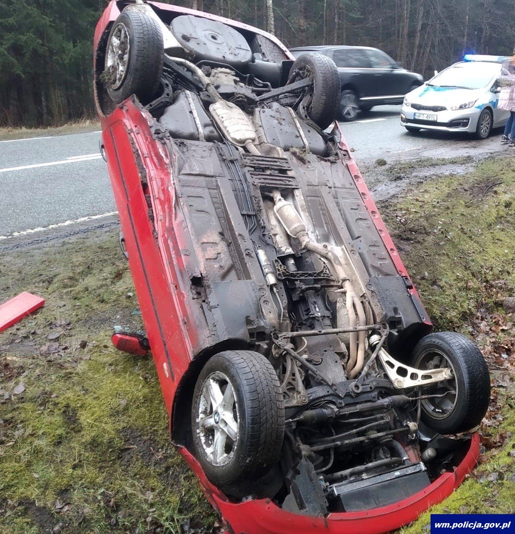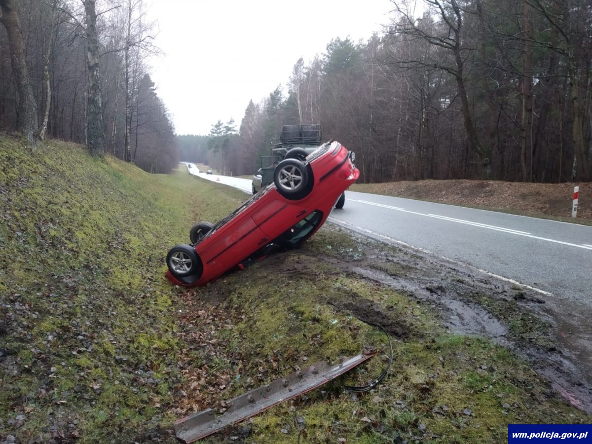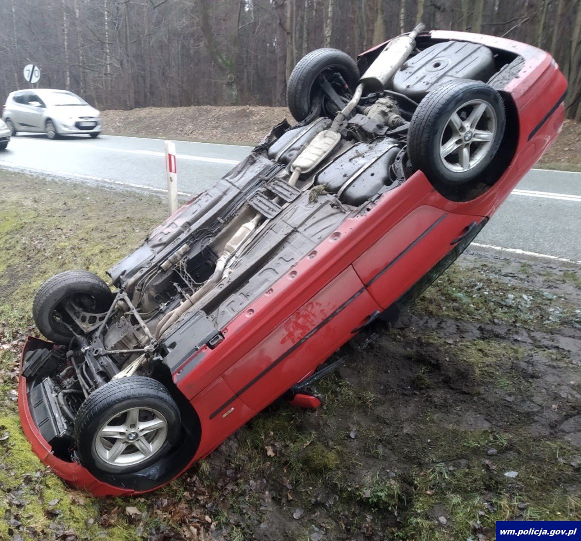 Do zdarzenia doszło w miniony piątek (21.02.20) przed południem na drodze krajowej nr 51 między m. Lidzbark Warminski – Dobre Miasto. Jak ustalili policjanci pracujący na miejscu zdarzenia za m. Miłogórze kierujący osobowym bmw nie dostosował prędkości do warunków panujących na drodze, stracił panowanie nad pojazdem i wpadając w poślizg dachował w przydrożnym rowie.
