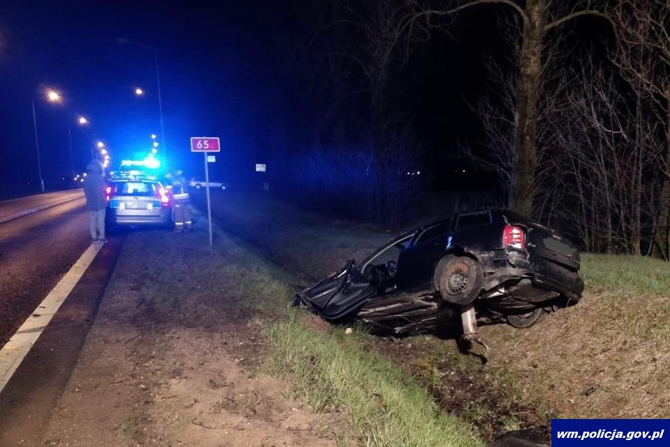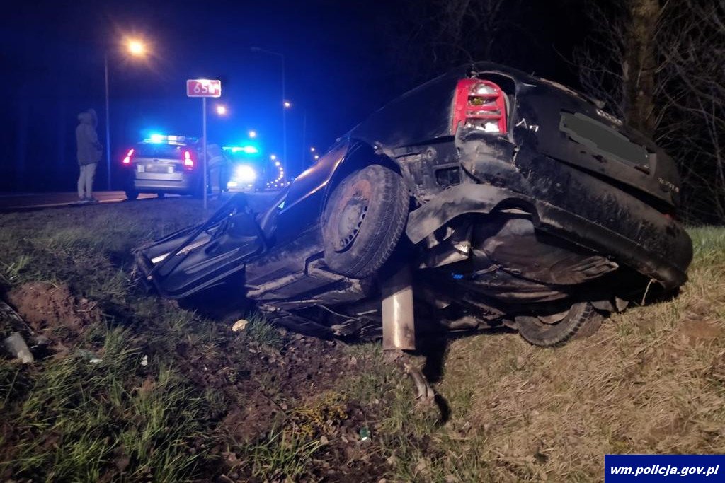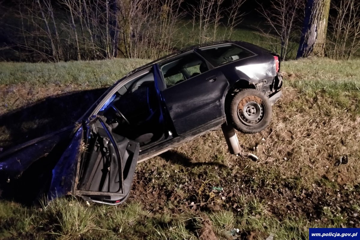 W środę (15.04.2020) tuż przed północą w miejscowości Kukowo oleccy policjanci zauważyli w przydrożnym rowie uszkodzony pojazd marki Audi. Natychmiast zatrzymali się, aby sprawdzić co się stało. Funkcjonariusze przy pojeździe zastali jedynie młodego chłopaka. W toku prowadzonych czynności ustalili, że pojazdem kierował 23-latek, który najprawdopodobniej nie dostosował prędkości do warunków drogowych, stracił panowanie nad pojazdem, dachował i wjechał do rowu. Następnie uciekł z miejsca zdarzenia pozostawiając tam 15-letniego brata.