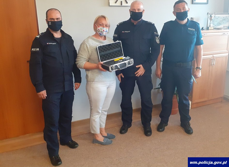 Bezpieczeństwo na drogach to nasza wspólna sprawa. Wiedzą również o tym doskonale samorządowcy, którzy wspierają policjantów w dbaniu o nie. W środę Komendant Powiatowy Policji w Kętrzynie insp. Dariusz Ślęzak z rąk Marty Kamińskiej - Wójt Gminy Barciany otrzymał nowoczesne urządzenie do badania stanu trzeźwości iBLOW Premium. Jest to szybki i prosty w obsłudze bezkontaktowy (pomiar bez ustnika) wskaźnik obecności lub nieobecności alkoholu w organizmie. Jeden cykl pomiarowy zajmuje około 15 sekund. Urządzenie będzie wykorzystywane w trakcie wykonywania czynności służbowych przez dzielnicowych na terenie gminy Barciany.