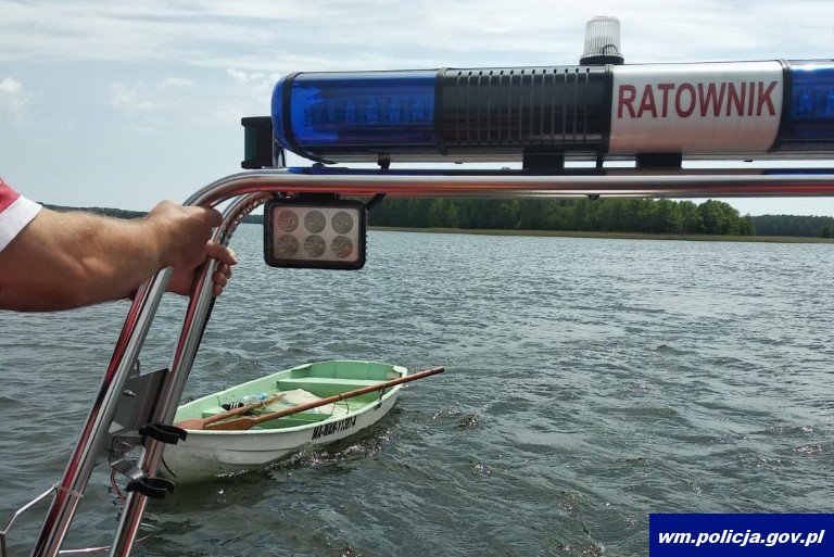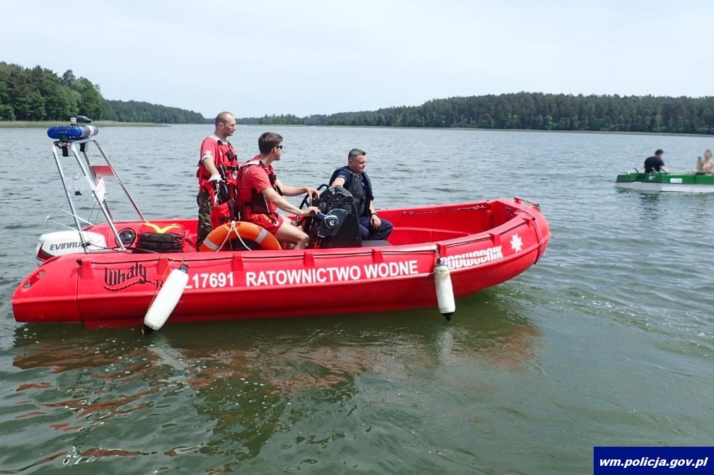 Policjant i ratownicy wodni uratowali czterech turystów, którzy wypadli z łódki do jeziora Orzysz