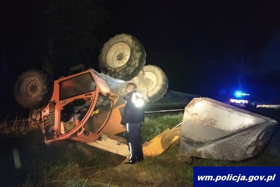 Do zdarzenia doszło 07.07.2020 r. O godz. 22:50 oficer dyżurny kętrzyńskich policjantów został powiadomiony przez mężczyznę, że w jednej z miejscowości w gminie Korsze nieznany sprawca ukradł koparkę teleskopową marki JLG wartości 120 000 złotych. Z informacji przekazanych przez zgłaszającego wynikało, że do kradzieży miało dojść pomiędzy godz. 19:00 a 22:00. Po chwili do dyżurnego zadzwonił inny mężczyzna i powiadomił, że w miejscowości Pieckowo gmina Reszel w przydrożnym rowie leży na dachu koparka z włączonym silnikiem, a w pobliżu pojazdu nie ma żadnych osób. We wskazane miejsce natychmiast pojechali policjanci. Jak się okazało była to ta sama maszyna, która została skradziona na terenie gminy Korsze. Pracujący nad tą sprawą policjanci zatrzymali mężczyznę podejrzewanego o krótkotrwałe użycie pojazdu. Funkcjonariusze ustalili, że mieszkaniec gminy Korsze był pracownikiem mężczyzny, który zgłosił kradzież. Podczas przesłuchania tłumaczył, że chciał zrobić na złość pracodawcy i dlatego bez jego pozwolenia „pożyczył” maszynę by sobie pojeździć. Podczas przesłuchania 29-latek przyznał, że w trakcie jazdy zaczepił „łychą” o przydrożne drzewo w wyniku czego maszyna wywróciła się na dach. Jak poinformował wyszedł z pojazdu o własnych siłach i chcąc powrócić do miejsca zamieszkania wszedł na jedną z posesji w miejscowości Pieckowo, skąd ukradł rower. Właścicielka wartość jednośladu wyceniła na 1500 złotych.