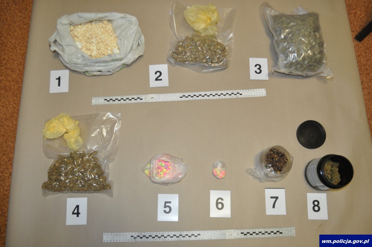 Funkcjonariusze z Wydziału Kryminalnego Komendy Powiatowej Policji w Giżycku zatrzymali 27-letniego mieszkańca Giżycka, który posiadał znaczne ilości środków odurzających w postaci amfetaminy, marihuany, ekstazy oraz grzybków halucynogennych. Podczas przeszukania pomieszczeń, policjanci zabezpieczyli ponad 1300 gramów amfetaminy, 700 gramów marihuany, 350 sztuk tabletek ekstazy oraz ponad 240 sztuk grzybków halucynogennych. Mężczyzna usłyszała zarzuty posiadania znacznej ilości narkotyków.