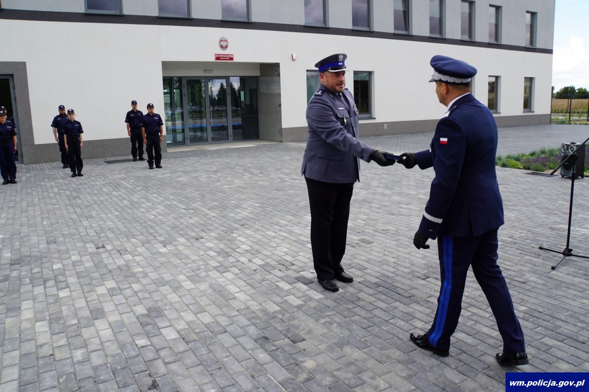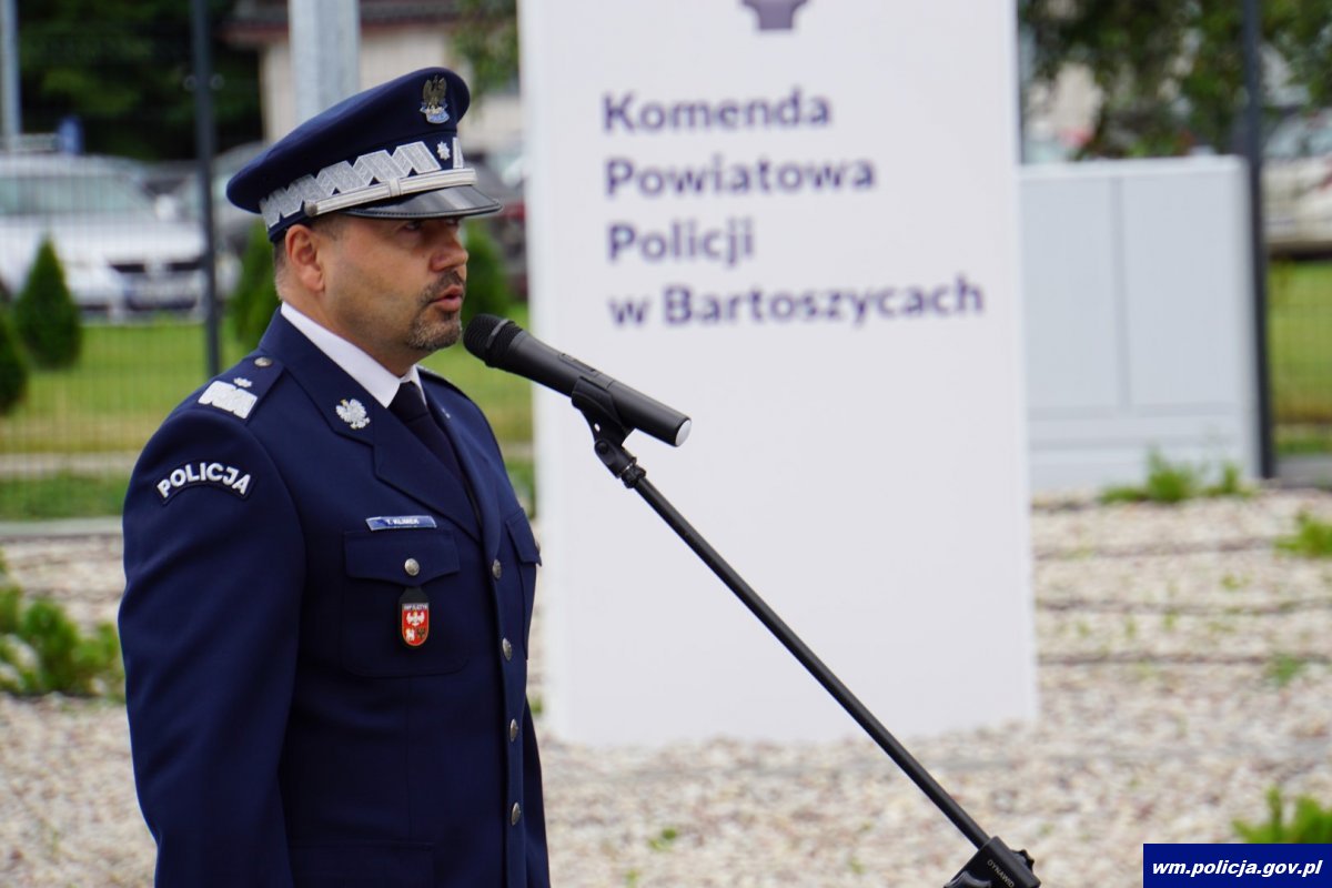 Nadinsp. Tomasz Klimek Komendant Wojewódzki Policji w Olsztynie przekazał klucze do budynku jego nowemu gospodarzowi mł. insp. Przemysławowi Fiertkowi Komendantowi Powiatowemu Policji w Bartoszycach.