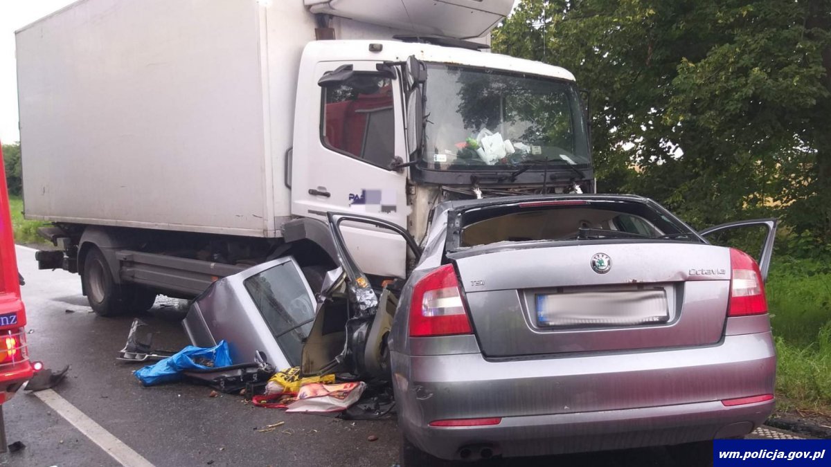 Nidziccy policjanci pod nadzorem prokuratora wyjaśniają okoliczności wypadku drogowego, do którego doszło wczoraj (20.07.2020 r.) około godz. 14:30 na drodze W545 koło miejscowości Kozłowo. Ze wstępnych ustaleń policjantów wynika, że kierujący samochodem marki Skoda Octawia na prostym odcinku drogi zjechał na przeciwny pas ruchu i czołowo zderzył się z jadącym z naprzeciwka pojazdem ciężarowym marki Mercedes. W wyniku zderzenia 2 osoby, które poruszały się autem osobowym poniosły śmierć na miejscu. Byli to 61 - latkowie, kobieta i mężczyzna, mieszkańcy powiatu działdowskiego. 49 - letni kierowca ciężarówki jechał sam i nie odniósł poważniejszych obrażeń, a ze wstępnych badań wynika, że był trzeźwy. Na czas prowadzenia czynności na miejscu zdarzenia drogowego droga była całkowicie zablokowana a policjanci wyznaczyli objazdy.