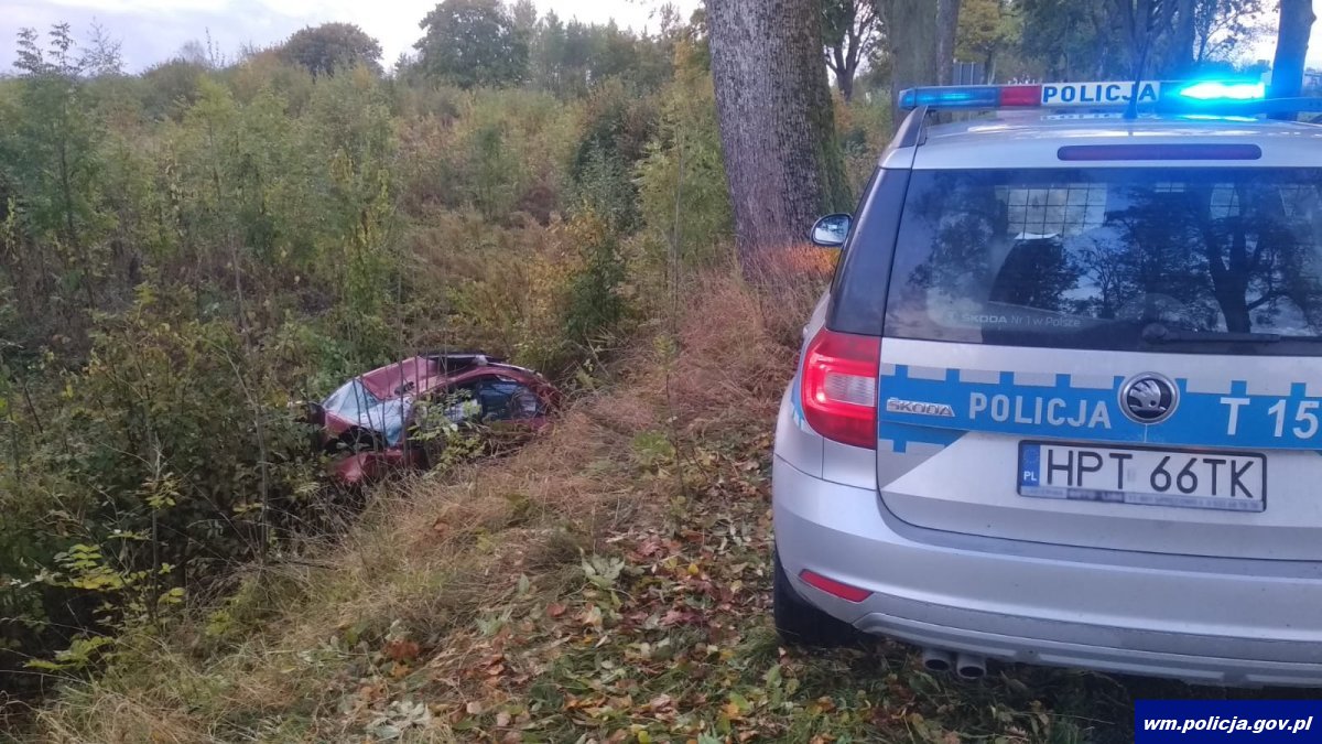 W niedzielę (18.10.2020r.) oficer dyżurny Komisariatu Policji w Dobrym Mieście otrzymał zgłoszenie o zdarzeniu drogowym w pobliżu m. Głotowo. Ze wstępnych ustaleń policjantów pracujących na miejscu wynika, że 37-letni kierujący Toyotą Corollą na prostym odcinku drogi z nieznanych przyczyn zjechał na pobocze, uderzył w przydrożne drzewo, a następnie doszło do wywrócenia pojazdu. Na zdarzenie najechali inni uczestnicy ruchu drogowego, którzy wyciągnęli dwie osoby z pojazdu. W aucie pozostała pasażerka, która nie mogła opuścić pojazdu. Interweniujący policjanci wydostali zakleszczoną w aucie kobietę i udzielili jej pomocy przedmedycznej. Po chwili na miejsce przyjechała straż pożarna i Zespół Ratownictwa Medycznego, którym przekazano poszkodowanych. Okazało się, że obrażenia 37-latka były na tyle poważne, że został przetransportowany śmigłowcem Lotniczego Pogotowia Ratunkowego do szpitala. W trakcie czynności okazało się, że kierujący toyotą wsiadł za kierownicę auta pomimo braku wymaganych uprawnień. Ponadto mężczyzna jechał pojazdem bez aktualnych badań technicznych. Badanie policyjnym alkomatem wykazało, że w momencie zdarzenia był trzeźwy. Policjanci prowadzą czynności mające na celu wyjaśnienie okoliczności wypadku drogowego.