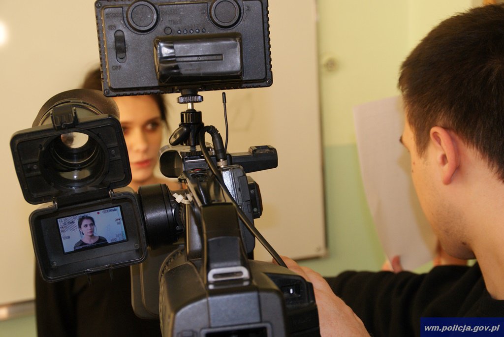 Wczoraj uczniowie mieli niecodzienną szansę na sprawdzenie swoich telewizyjnych umiejętności. Tematyka spotkania poświęcona została pracy oficera prasowego policji oraz współpracy z mediami. Oprócz funkcjonariusza w zajęciach uczestniczył przedstawiciel lokalnej telewizji – TV Braniewo 24 – pan Tomasz Sitarz.
