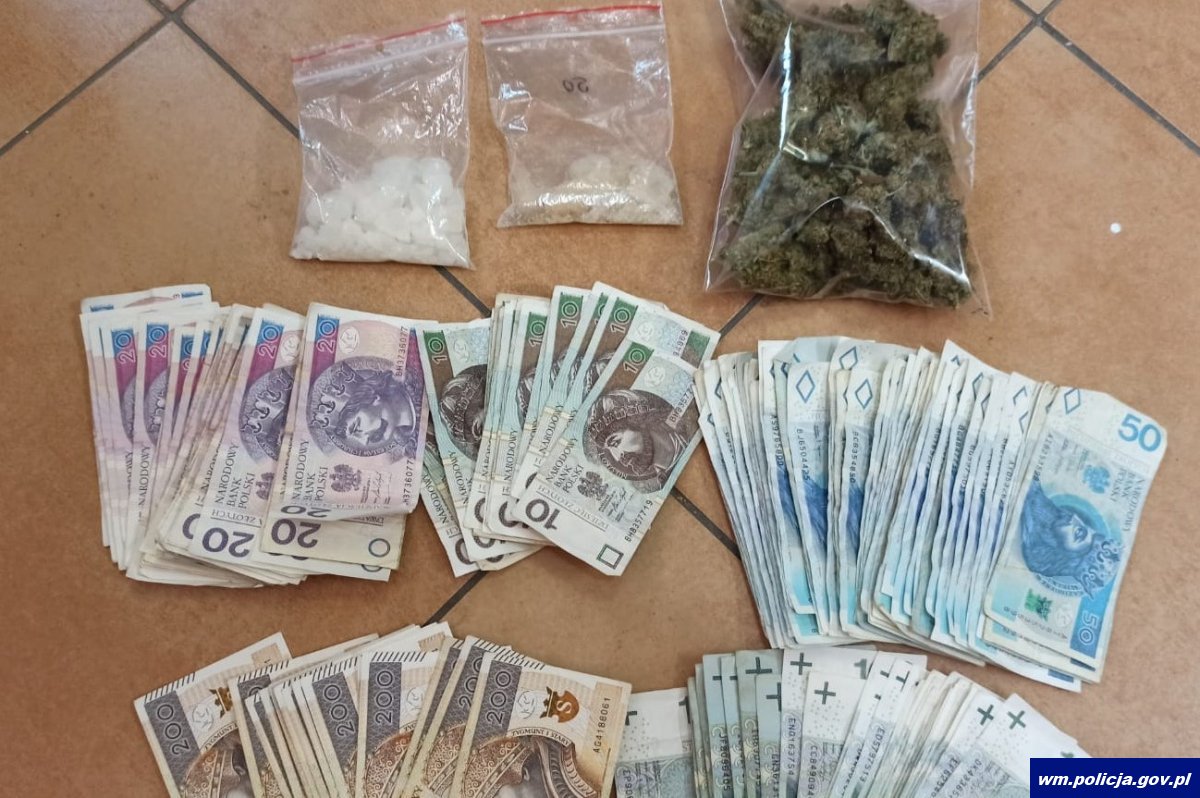 Ełccy policjanci zajmujący się zwalczaniem przestępczości narkotykowej ustalili, że w mieszkaniu zajmowanym przez młodego mężczyznę mogą znajdować się niedozwolone substancje. Ustalenia te potwierdziły się podczas przeszukania. Policjanci znaleźli łącznie ponad 110 gramów marihuany i mefedronu. Substancje te zostaną poddane specjalistycznym badaniom. Zabezpieczyli także pieniądze znalezione przy narkotykach – ponad 10 000 złotych. Właściciel narkotyków został zatrzymany. To 22-letni mieszkaniec powiatu giżyckiego, który w Ełku wynajmował mieszkanie. Obecnie funkcjonariusze prowadzą dalsze czynności i wyjaśniają szczegółowo wszystkie okoliczności tej sprawy.