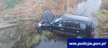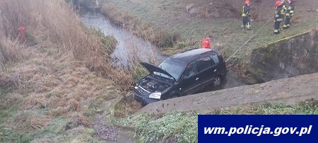 Do kolejnej niebezpiecznej sytuacji doszło tego samego dnia (30.12.2020r.) przed godziną 8:00 w miejscowości Siła. W tym przypadku, zdarzenie mogło mieć dużo poważniejsze skutki, na szczęście 38-letniea kierująca osobową kią nie odniosła obrażeń ciała. 38-latka wyjeżdżając z łuku drogi wpadła w poślizg, straciła panowanie nad kierowanym pojazdem, zjechała na prawe pobocze, uderzyła w skarpę i zatrzymała się w korycie pobliskiej rzeki Kosna.