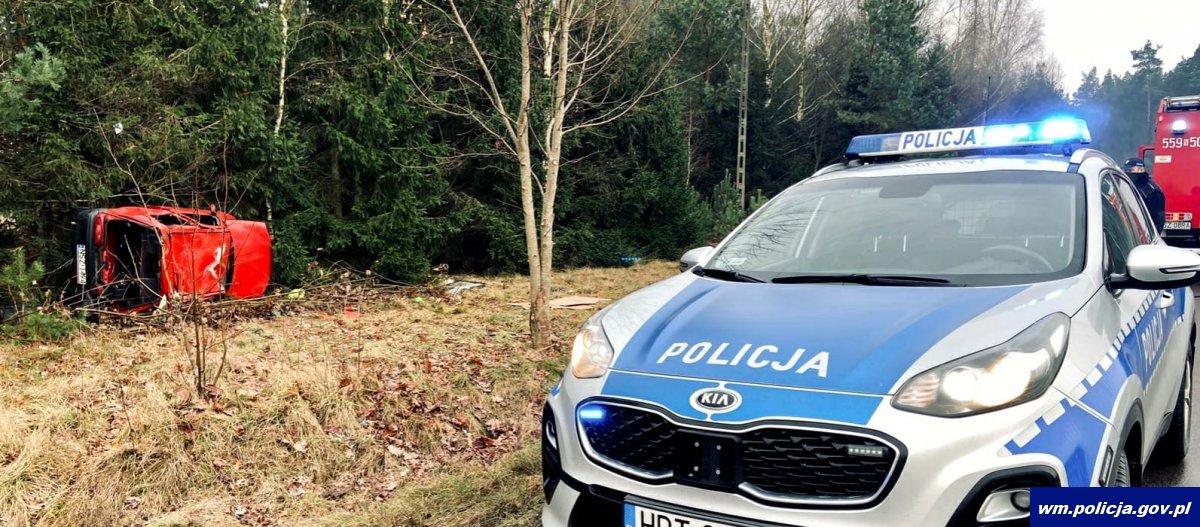 W środę (30.12.2020r.) parę minut po godzinie 10:00 oficer dyżurny otrzymał telefoniczne zgłoszenie o dachowaniu pojazdu osobowego w okolicach miejscowości Świętajno. Z ustaleń funkcjonariuszy pracujących na miejscu wynika, że 92-letni kierowca pojazdu marki Fiat Seicento nie dostosował prędkości do warunków panujących na drodze. Na łuku drogi stracił panowanie nad pojazdem, wpadł w poślizg i dachował. 92-letni mieszkaniec gminy Świętajno został przetransportowany do szpitala. Na szczęście jego życiu nie zagraża niebezpieczeństwo. Mężczyzna był trzeźwy. Podróżował sam.