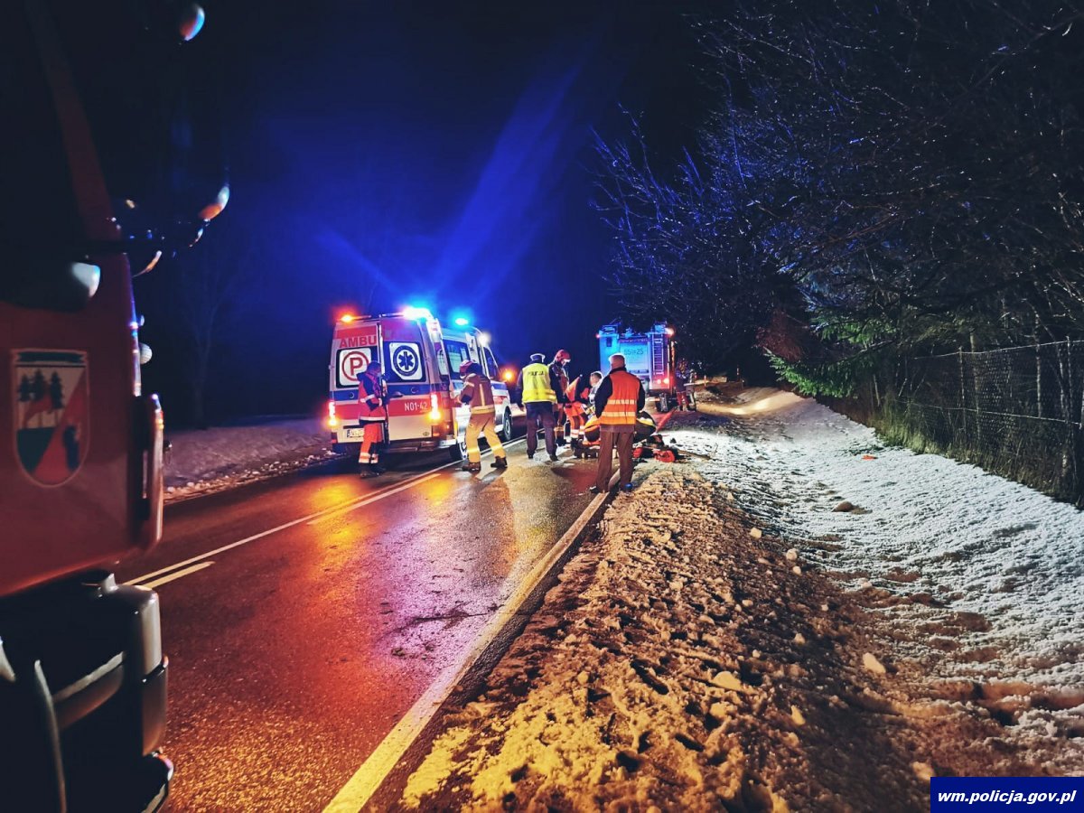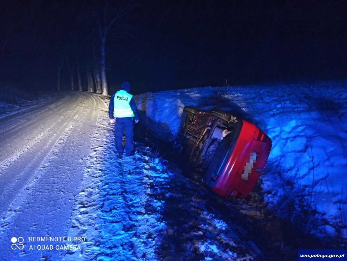 We wtorek (26.01.2021r.) około godziny 05:45 doszło do zdarzenia drogowego na drodze wojewódzkiej nr 513. Było to w okolicach toru motocrossowego. Jak ustalono kierujący pojazdem marki Volkswagen Polo na łuku drogi nie dostosował prędkości do warunków panujących na jezdni, w wyniku czego, wpadł w poślizg i zjechał do przydrożnego rowu. Kierujący był trzeźwy.