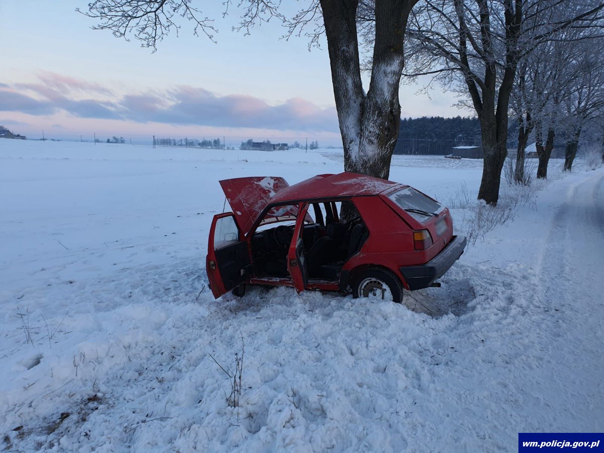 W piątek (12.02.2021r.) rano, tuż przed godziną 6:30 oficer dyżurny otrzymał zgłoszenie informujące o tym, że w miejscowości Tomaszewo doszło do wypadku drogowego. Policjanci, którzy pojechali na miejsce wstępnie ustalili, że kierujący volkswagenem golfem nie dostosował prędkości jazdy do warunków panujących na drodze w wyniku czego stracił panowanie nad pojazdem i uderzył w przydrożne drzewo. Mężczyzna jechał sam. Na miejsce zdarzenia zadysponowano helikopter Lotniczego Pogotowia Ratunkowego, który przetransportował go do szpitala.
