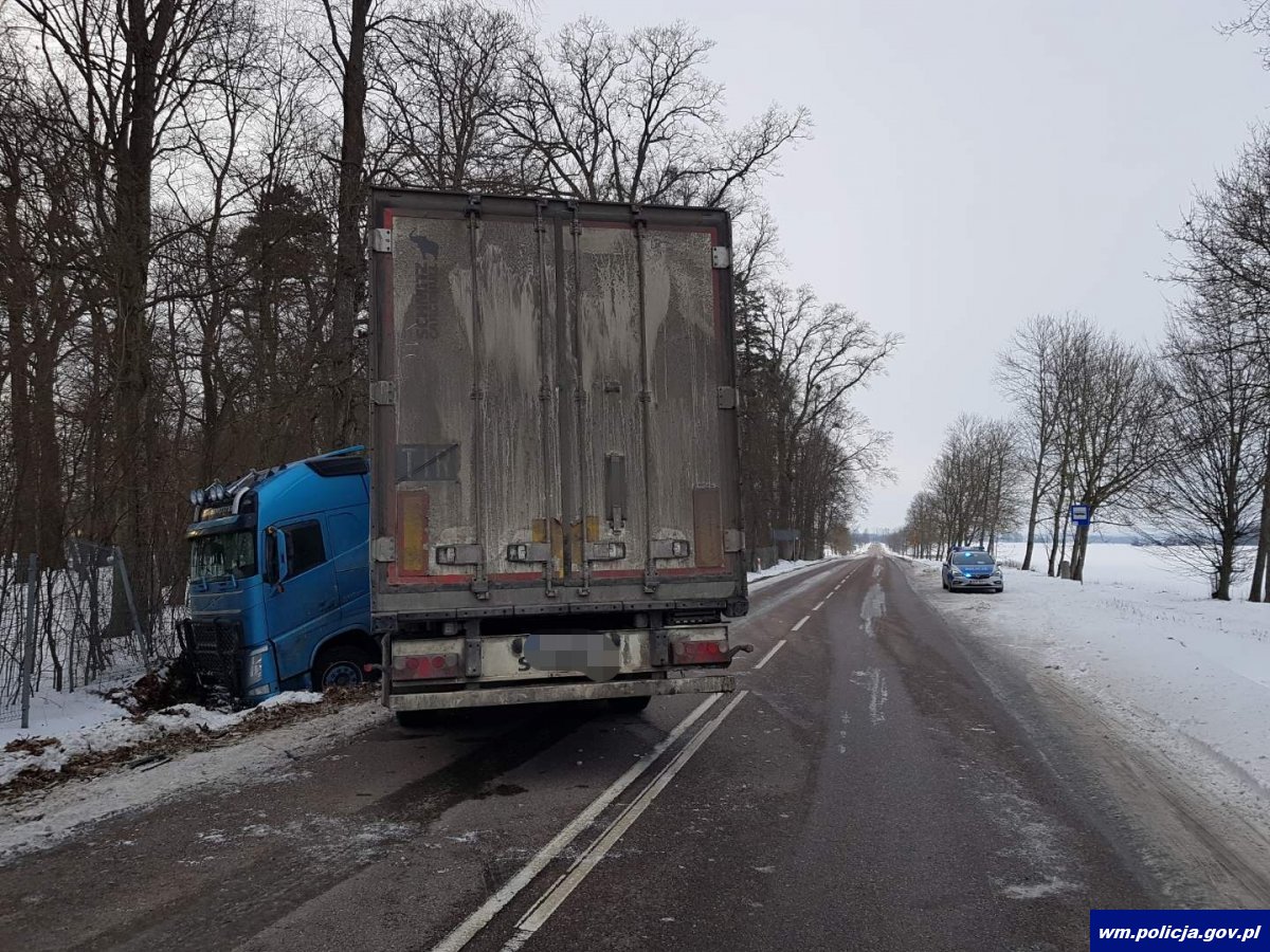 W czwartek (18.02.2021r.) około 06:40 oficer dyżurny otrzymał zgłoszenie o zdarzeniu drogowym zaistniałym na drodze wojewódzkiej nr 593 w okolicach miejscowości Ełdyty Wielkie. Jak ustalono 41-lenia kierująca pojazdem marki Audi A3 jadąc drogą od strony Dobrego Miasta w kierunku Morąga na oblodzonej nawierzchni wpadła w poślizg i uderzyła w drzewo. W miejscu zdarzenia ruchu odbywał się wahadłowo. Policjanci wyjaśnią wszelkie okoliczności zdarzenia.