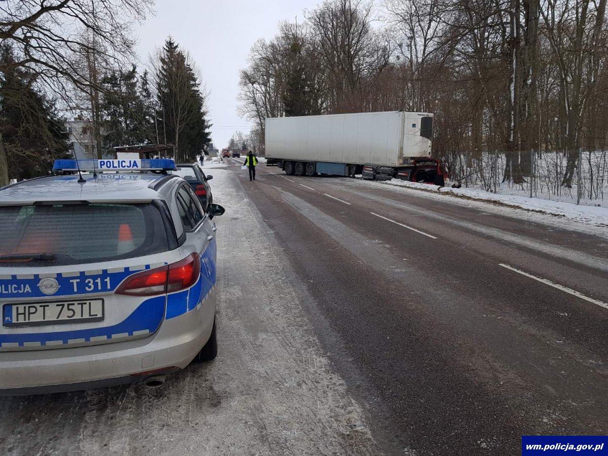 W środę (17.02.2021r.) przed godziną 14:00 na trasie Bartoszyce – Kętrzyn w miejscowości Łabędnik w okolicy skrzyżowania prowadzącego do Sokolicy doszło do zdarzenia drogowego, w którym udział brały dwie osobówki i ciężarówka. W trybie pilnym interweniowali policjanci z bartoszyckiej drogówki. Funkcjonariusze ustalili, że 74 – letnia kobieta kierująca skodą, jadąc z Bartoszyc skręciła w lewo w drogę prowadzącą do Sokolicy. Kobieta nie ustąpiła pierwszeństwa przejazdu nadjeżdżającej z przeciwka ciężarówce. Jadący ciężarowym volvo, 48-latek w celu uniknięcia zderzenia ze skodą gwałtownie skręcił w lewo, po czym stracił panowanie nad autem i zderzył się z nadjeżdżającym od strony Bartoszyc volkswagenem, którym podróżowały 3 osoby. Szczęśliwie żadna z 5 osób biorących udział w zdarzeniu nie doznała obrażeń ciała, a tym samym zdarzenie było kolizją, a nie wypadkiem drogowym. Za spowodowanie zagrożenia bezpieczeństwa w ruchu drogowym policjanci ukarali mandatem 74-latkę, a 6 punktów karnych zasiliło jej konto.