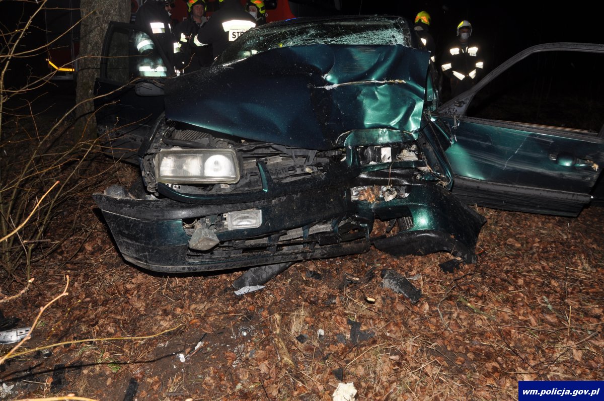 Skrajną nieodpowiedzialnością wykazał się 38-latek, który będąc kompletnie pijanym wsiadł za kierownicę osobowego seata. Z dwoma promilami alkoholu w organizmie ta jazda nie mogła skończyć się inaczej niż się skończyła – kilka minut po północy (05.04.2021) na drodze W 527 pijany kierowca stracił kontrolę nad pojazdem, wpadł w poślizg i uderzył w przydrożne drzewo. Siła uderzenia była tak duża, że samochód został doszczętnie zniszczony. To cud, że w tym zdarzeniu nikt nie zginął, mimo, że autem podróżowało jeszcze dwoje pasażerów, którzy karetką pogotowia zostali przetransportowani do szpitala – nie odnieśli obrażeń zagrażających ich życiu. Na domiar złego, po sprawdzeniu 38-letniego „śmiałka” w policyjnych systemach okazało się, że nie posiadał on prawa jazdy za co już wkrótce będzie tłumaczyć się przed sądem.