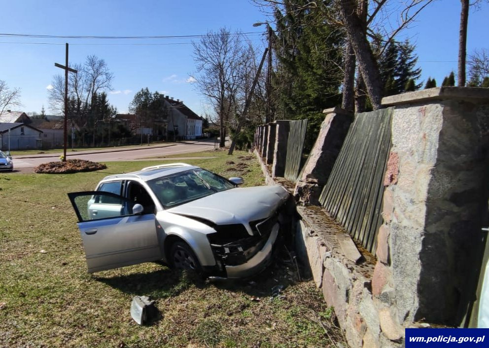 Tego samego dnia w niedzielę (04.04.2021r.) parę minut przed godziną 14:00 oficer dyżurny otrzymał telefoniczne zgłoszenie o zdarzeniu drogowym, do którego doszło w miejscowości Siódmak w gminie Szczytno. Z relacji świadków zdarzenia wynikało, że kierujący pojazdem marki Opel Corsa wpadł w poślizg i uderzył w bramę jednej z posesji. Funkcjonariusze ustalili, że sprawcą kolizji był 34-letni mieszkaniec gminy Szczytno. Mężczyzna jadąc przez miejscowość Siódmak nie dostosował prędkości do panujących na drodze warunków, wpadł w poślizg i uderzył w bramę wjazdową pobliskiej posesji. 34-latek został poddany badaniu na zawartość alkoholu w wydychanym powietrzu. Mężczyzna był trzeźwy, jednak w trakcie weryfikacji jego danych w policyjnych systemach informatycznych okazało się, że posiada on aktywny sądowy zakaz kierowania wszelkimi pojazdami mechanicznymi.