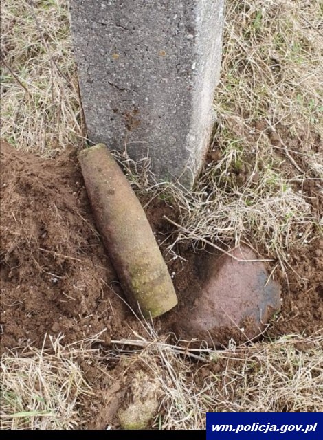 Pierwsze zgłoszenie wpłynęło w poniedziałek (12.04.2021r.) około godz. 16:30. Oficer lidzbarskiej policji przyjął informację o odnalezieniu granatu moździerzowego podczas prac polowych w miejscowości Wapnik gm. Orneta.