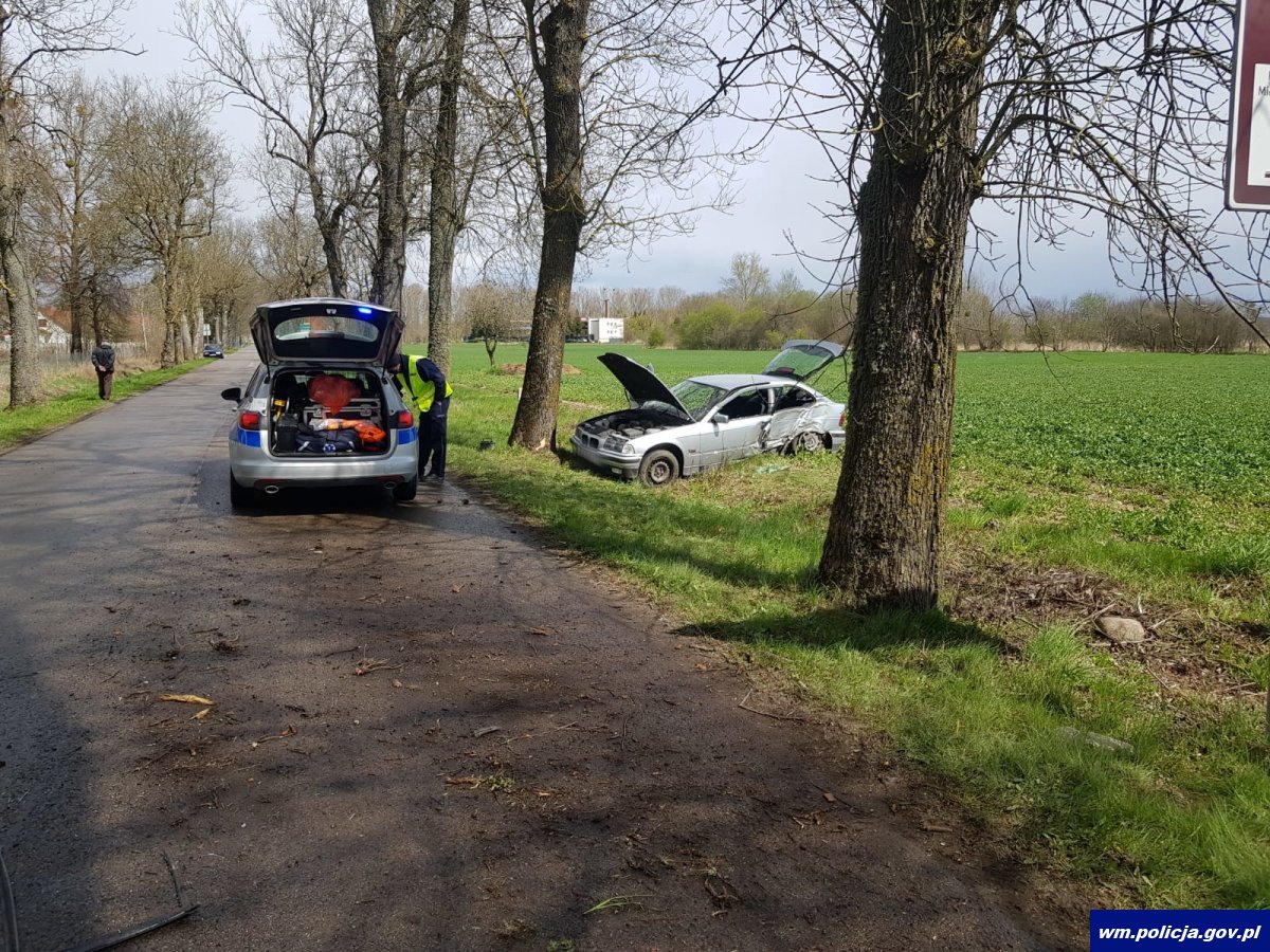 Tego samego dnia (24.04.2021r.) funkcjonariusze ustalali przyczyny zdarzenia, do którego doszło po godzinie 12.00 w Macharach. Tam kierująca mercedesem zjechała na przeciwległy pas ruchu, przejechała przez chodnik, po czym uderzyła w przydrożne drzewa. Kierująca została przewieziona na badania do szpitala. Doznała obrażeń twarzoczaszki. W chwili zdarzenia była trzeźwa. Ustalono jednak, że nie miała uprawnień do kierowania pojazdami.