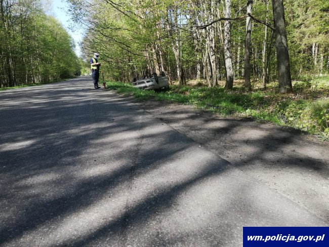 W czwartek (13.05.2021r.) oficer dyżurny Komendy Miejskiej Policji w Olsztynie otrzymał zgłoszenie o zdarzeniu drogowym na trasie Nikielkowo-Łęgajny. Ze wstępnych ustaleń policjantów pracujących na miejscu wynika, że 33-latek kierujący osobową skodą na prostym odcinku drogi najechał na tył poprzedzającego pojazdu. Kierujący Volkswagenem Polo w wyniku zdarzenia zjechał do przydrożnego rowu, gdzie doszło do dachowania auta. Z relacji świadków wynikało, że 33-latek jechał całą szerokością drogi od prawej do lewej strony, a następnie po zdarzeniu próbował odjechać z miejsca, co zostało mu uniemożliwione przez osoby postronne. Świadkowie pomogli wydostać się z auta 66-letniemu kierowcy volkswagena oraz wezwali służby. Badanie policyjnym alkomatem wykazało, że 33-latek był trzeźwy, jednak ze względu na jego zachowanie funkcjonariusze zdecydowali się przewieść go do szpitala, gdzie została mu pobrana krew do badań pod kątem obecności środków odurzających. Funkcjonariusze zatrzymali mężczyźnie prawo jazdy. Trwają czynności mające na celu wyjaśnić wszystkie okoliczności wypadku drogowego.