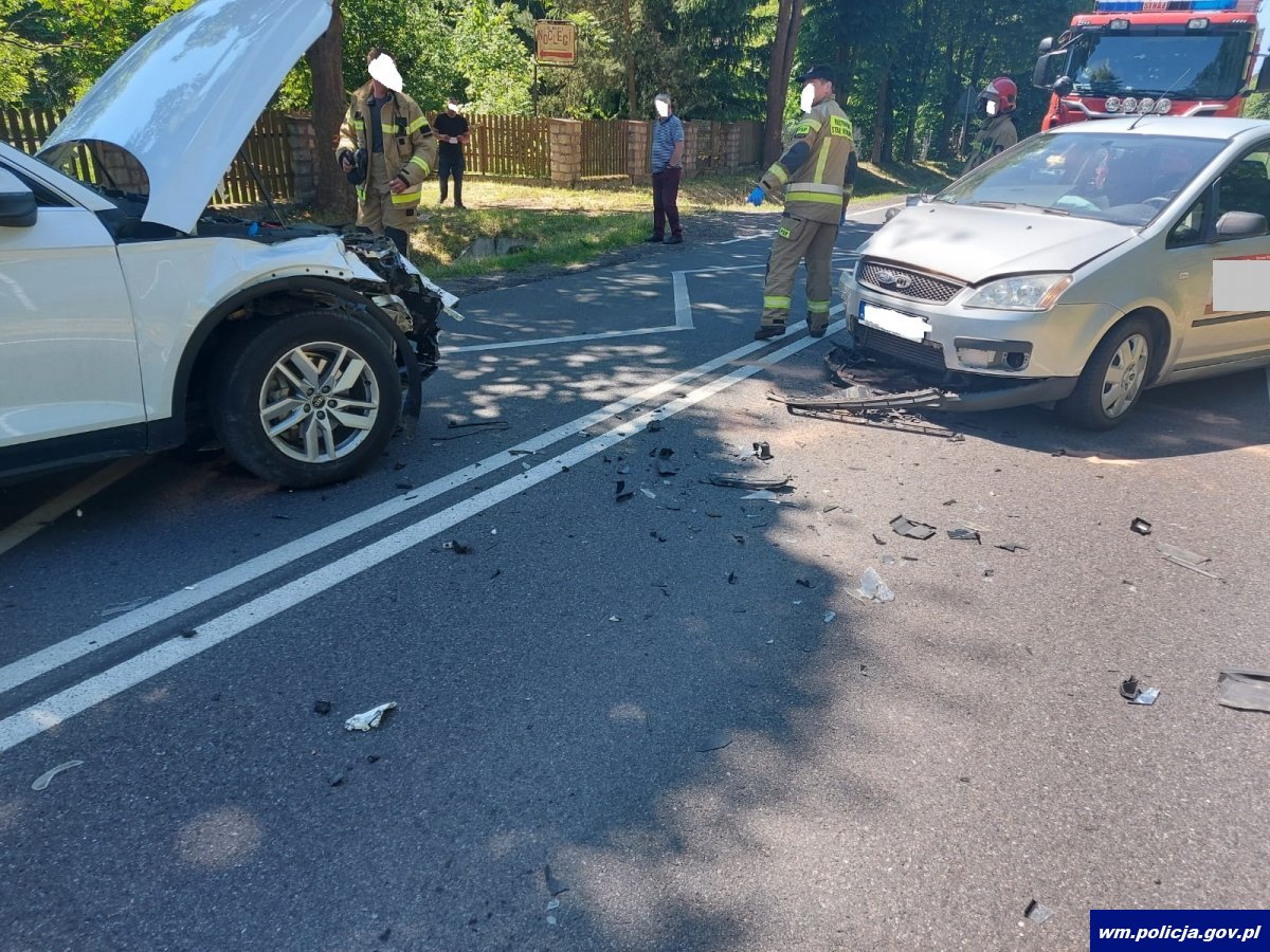 W środę (16.06.2021r.) po godzinie 12 służby ratunkowe zostały skierowane na drogę krajową 53, do miejscowości Młyńsko, gdzie doszło do zderzenia dwóch pojazdów osobowych. Policjanci pracujący na miejscu tego zdarzenia ustalili, że 68-letni mieszkaniec Łodzi, jadący pojazdem marki Audi z miejscowości Olszyny w kierunku Szczytna, chcąc skręcić na posesję znajdującą się po lewej stronie, zjechał na przeciwległy pas ruchu i jadąc tym pasem doprowadził do zderzenia z prawidłowo jadącym pojazdem marki Ford. W pojeździe tym podróżowało małżeństwo z Gminy Świętajno wraz z córkami w wieku 16 i 4 lat.