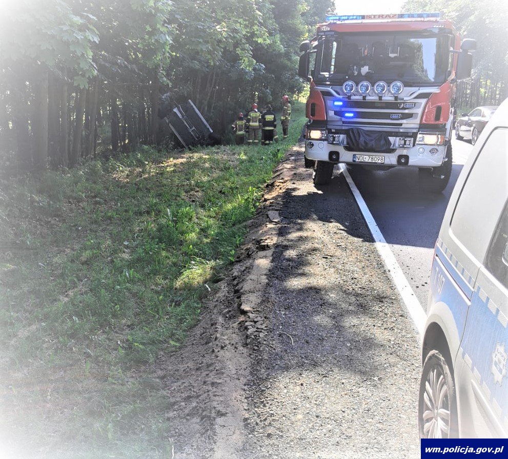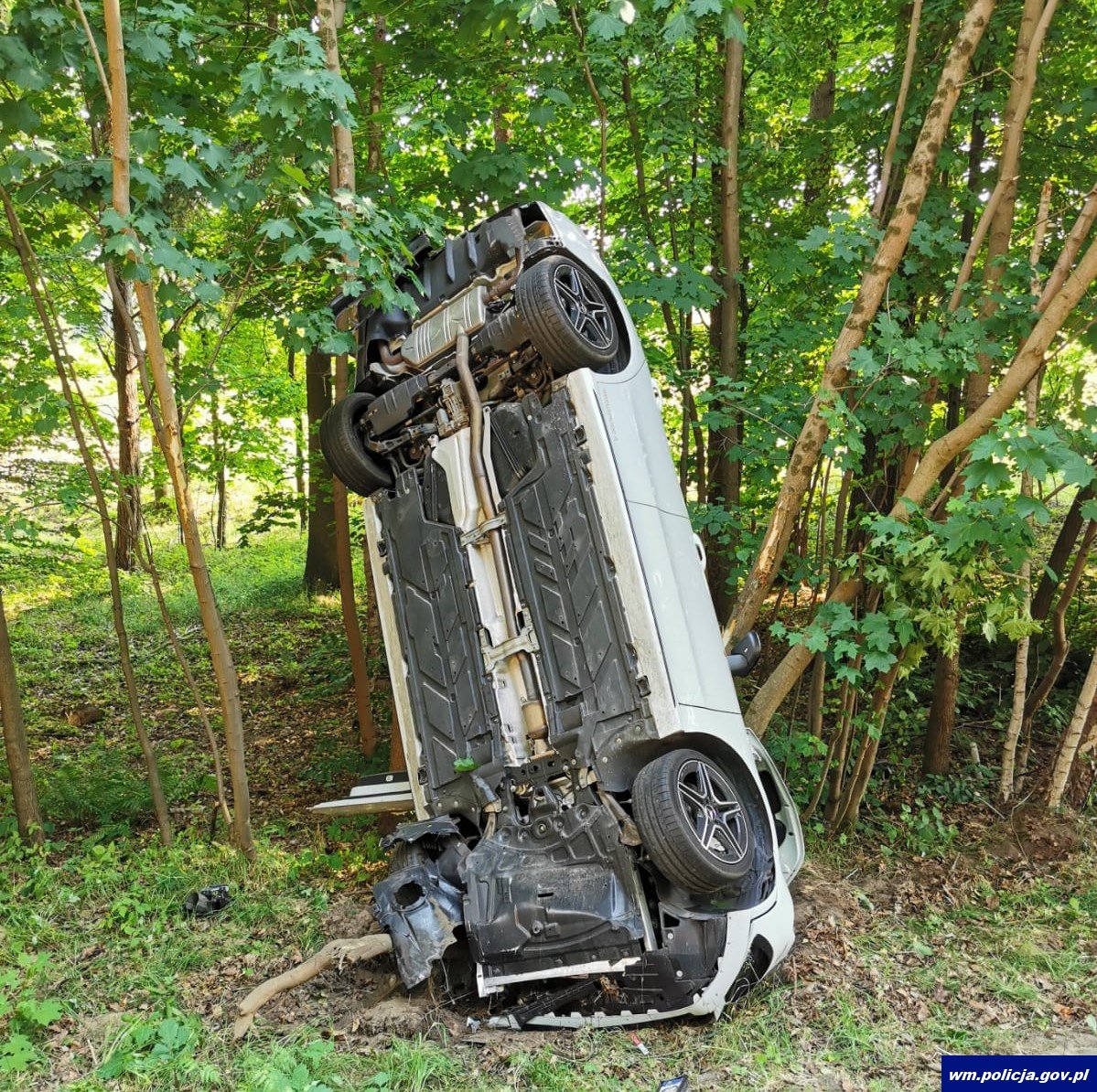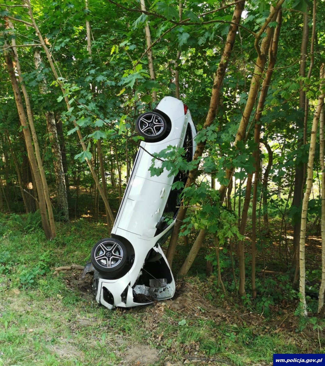 Policjanci ruchu drogowego pracowali na miejscu zdarzenia drogowego do którego na drodze K-16. Kierujący osobowym mercedesem jadąc od m. Dłużki w kierunku miejscowości Podlejki na łuku drogi w prawo zjechał na przeciwny pas ruchu i wpadł do przydrożnego rowu gdzie dachował. Na szczęście 26-letniemu kierowcy nic się nie stało. Skończyło się na uszkodzonym pojeździe i mandacie karnym.
