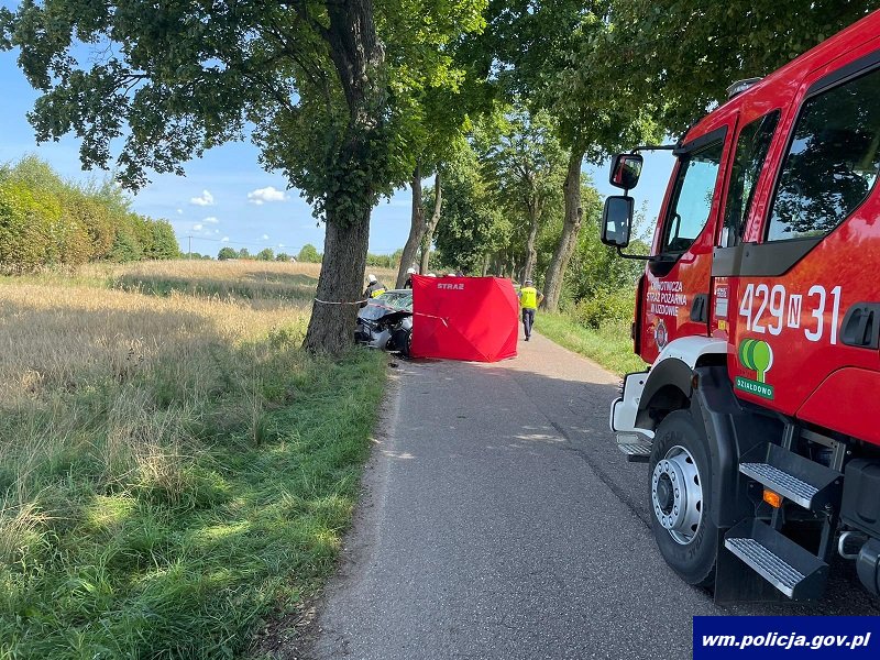 We wtorek (09.08.2021) około godz. 10:00 oficer dyżurny działdowskiej policji otrzymał zgłoszenie o zdarzeniu drogowym na trasie Ruszkowo-Mosznica. Według wstępnych ustaleń policjantów pracujących na miejscu zdarzenia wynika, że kierująca osobowym peugeotem najprawdopodobniej straciła panowanie nad pojazdem w wyniku czego auto uderzyło w przydrożne drzewo. Pomimo podjętej reanimacji kierująca nim 62-latka zmarła.