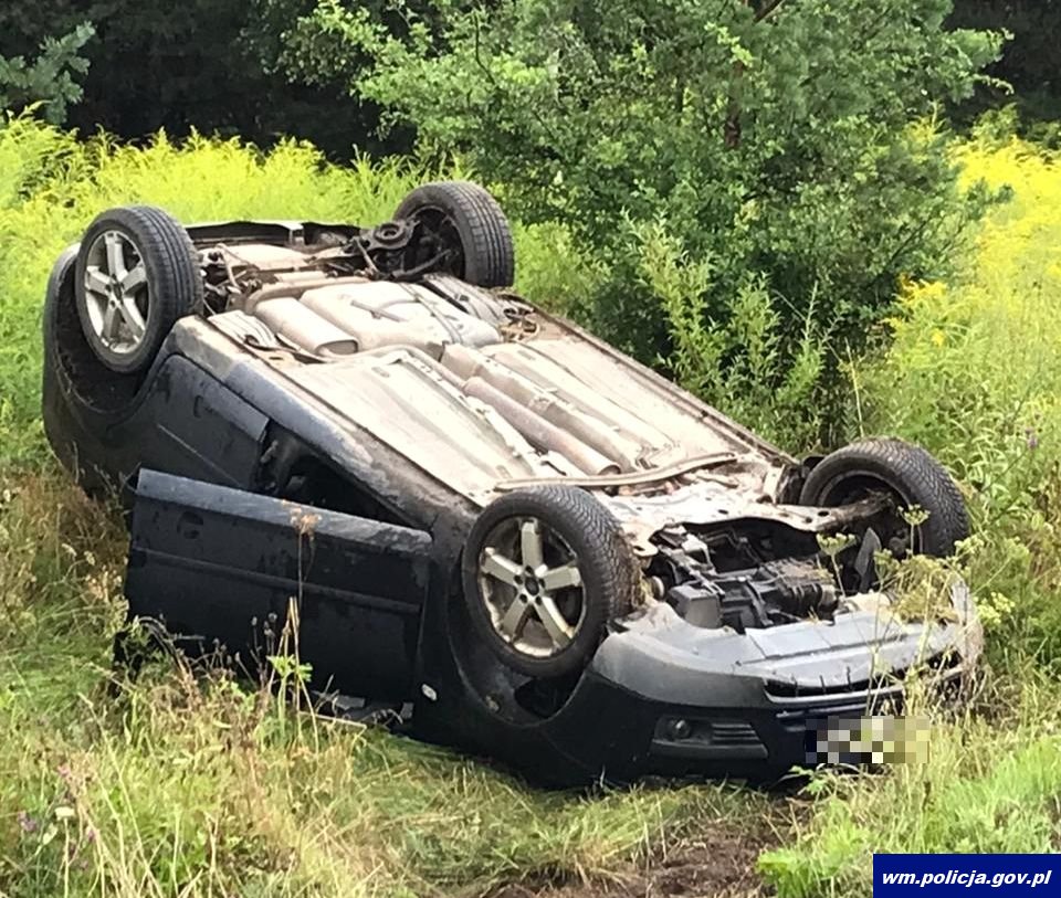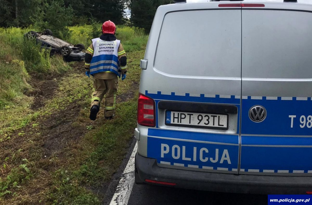 W poniedziałek (16.08.2021r.) parę minut przed godziną 09:00 policjanci zostali skierowani do obsługi zdarzenia drogowego, do którego doszło w miejscowości Korpele w gminie Szczytno. Ze wstępnych ustaleń funkcjonariuszy wynika, że 55-letni kierowca Forda, jadąc od miejscowości Jedwabno w kierunku Szczytna, na łuku drogi, nie zachował należytej ostrożności, nie dostosował prędkości jazdy do panujących warunków, w wyniku czego zjechał na przeciwległy pas ruchu, a następnie do rowu i dachował.