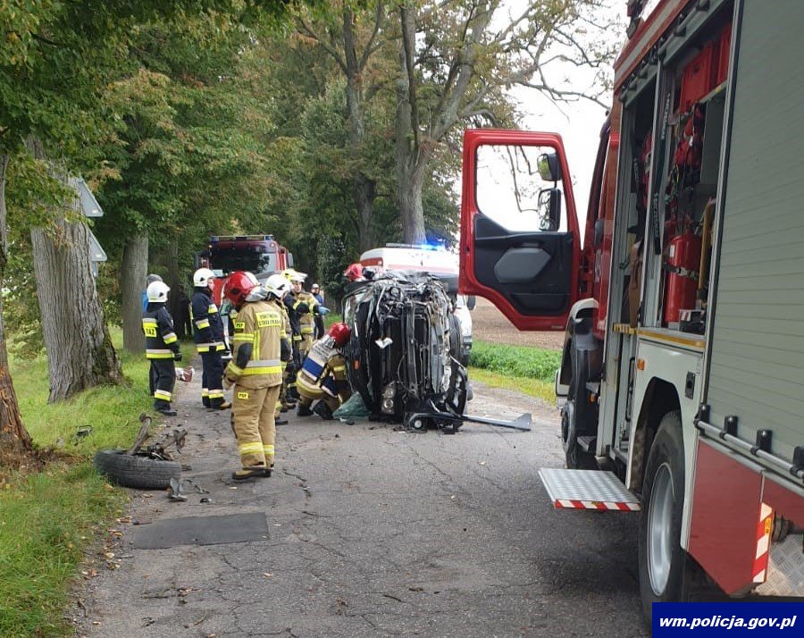 W czwartek (23.09.2021r.) około godziny 09:00 oficer dyżurny lidzbarskiej policji został powiadomiony o zdarzeniu drogowym na drodze wojewódzkiej nr 513 w okolicach skrzyżowania drogi Kiwity - Kobiela. Jak wstępnie ustalono, 26-letnia kierująca pojazdem marki Honda CRV jadąc od strony miejscowości Kiwity w kierunku Lidzbarka Warmińskiego z nieznanych dotąd przyczyn zjechała na przeciwległy pas jezdni i uderzyła w drzewo. Następnie pojazd po zdarzeniu przewrócił się na bok. Oprócz kierującej w pojeździe znajdowało się jej dziecko. Kobieta z obrażeniami ciała została przewieziona do Szpitala Wojewódzkiego w Olsztynie, natomiast dziecko do Wojewódzkiego Szpitala Dziecięcego w Olsztynie. Droga w miejscu zdarzenia na czas pracy służb ratowniczych była zablokowana. Kierująca była trzeźwa. Pojazd został zabezpieczony na policyjnym parkingu. Policjanci wyjaśnią wszelkie okoliczności zdarzenia.