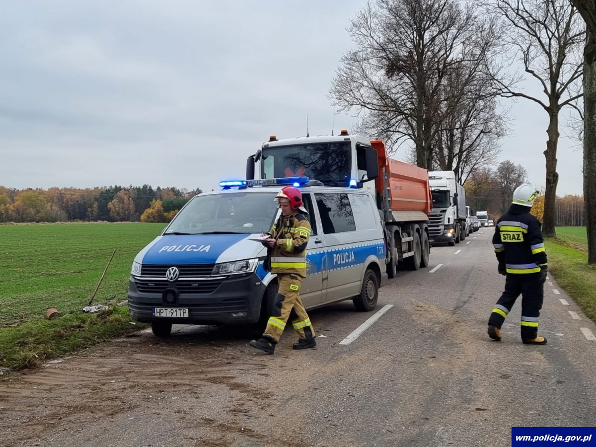 Policjanci ogniwa patrolowo-interwencyjnego i ruchu drogowego z Działdowa pracowali na miejscu zdarzenia drogowego z udziałem samochodu ciężarowego i ciągnika rolniczego. Do zdarzenia doszło na drodze wojewódzkiej nr 542 tuż przed Uzdowem. W wyniku zdarzenia jedna osoba trafiła do szpitala w Działdowie.