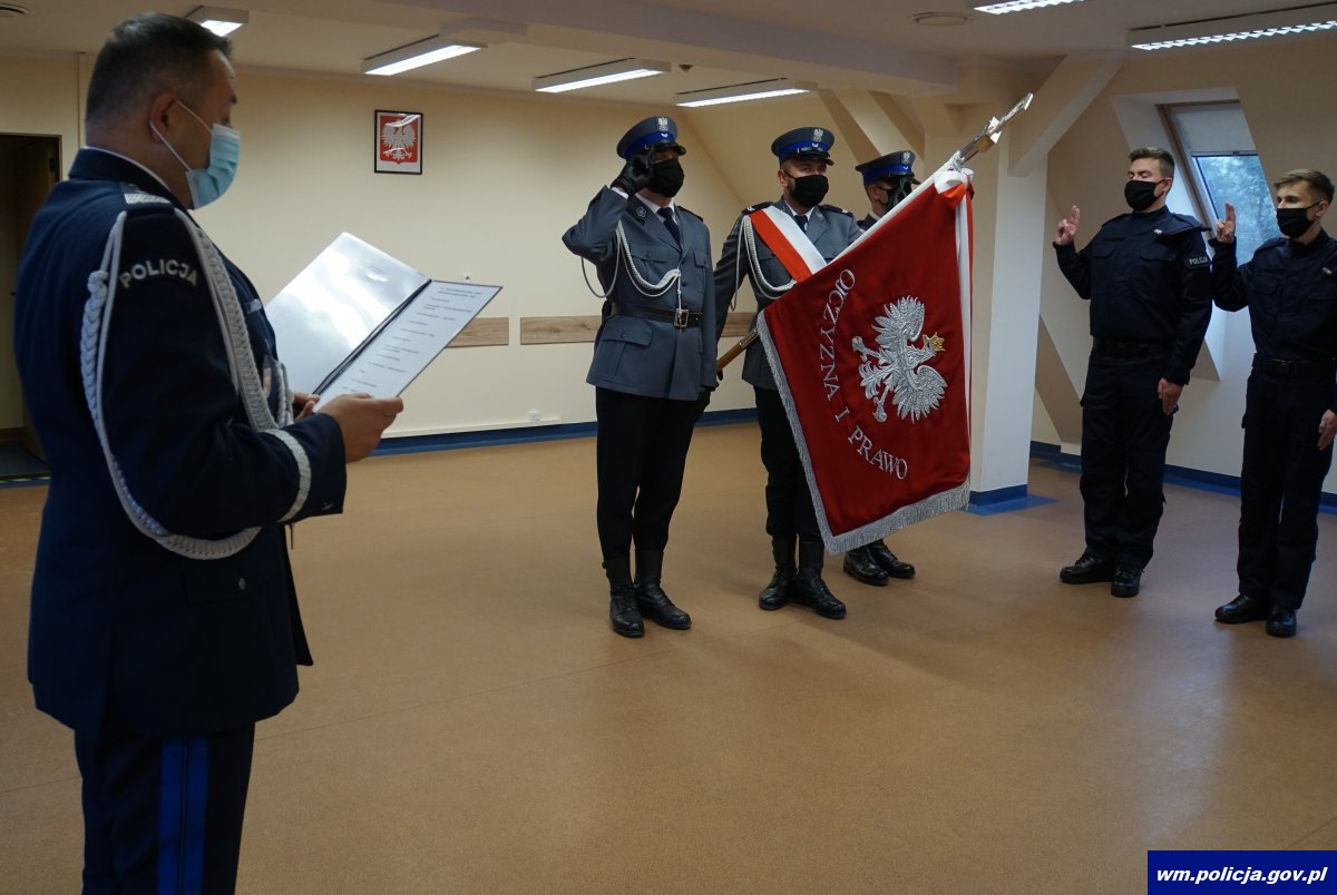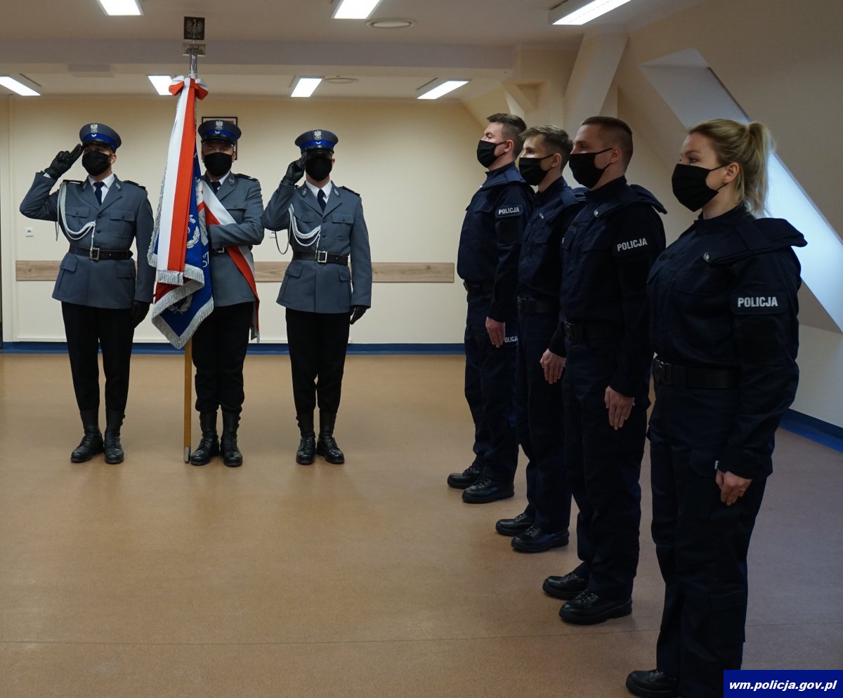 Choć w porównaniu do wcześniejszych uroczystości, to ślubowanie miało zdecydowanie bardziej kameralny charakter, to nadinsp. Tomasz Klimek Komendant Wojewódzki Policji w Olsztynie zadbał o to, by była to równie podniosła chwila jak ta, kiedy rotę ślubowania wypowiadało kilkadziesiąt osób. Szef warmińsko – mazurskich policjantów osobiście odczytał słowa roty, które po nim powtórzyli ślubujący na sztandar nowi policjanci.