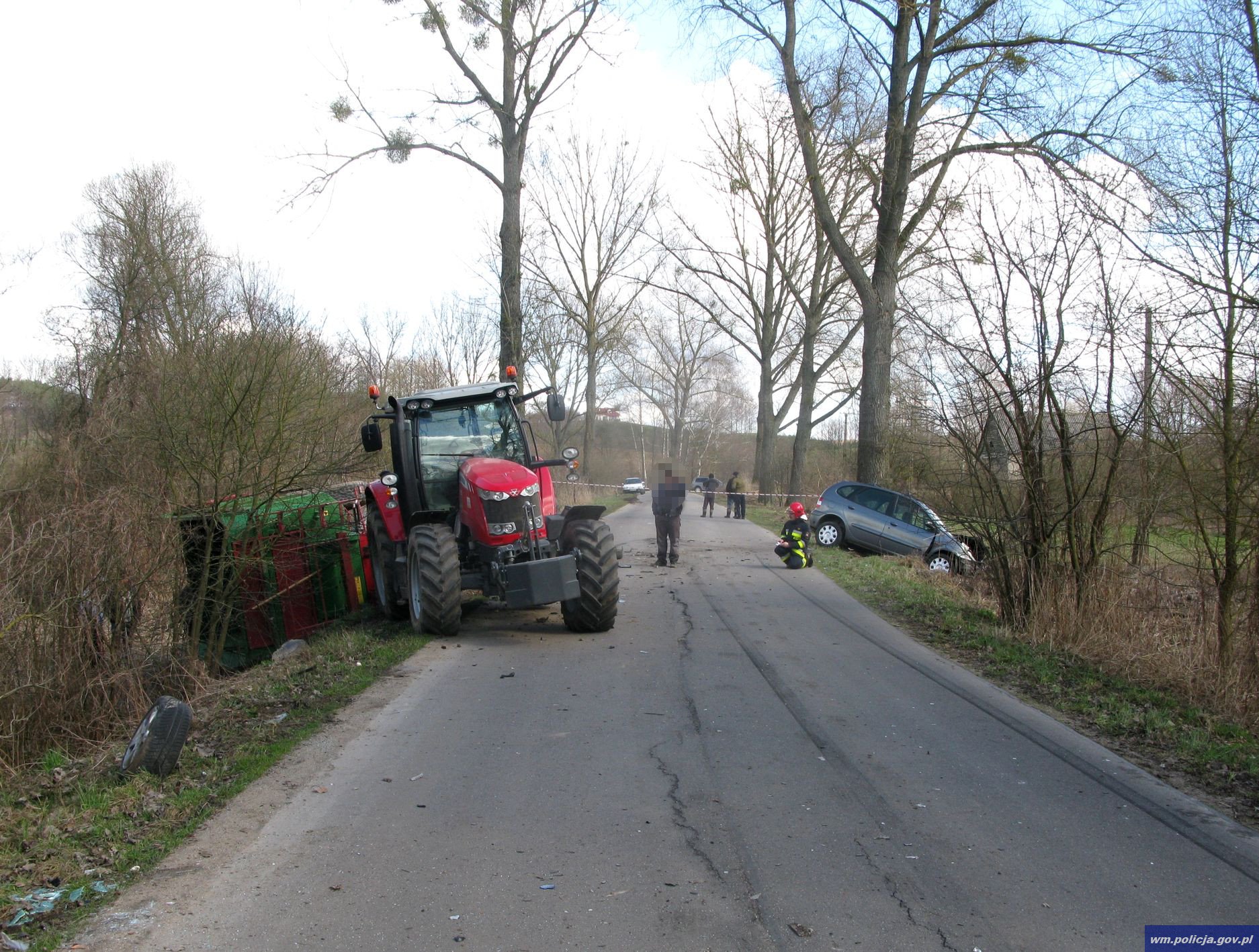 Policjanci pracowali na miejscu zdarzenia drogowego, do którego doszło w miejscowości Trzcin. Ze wstępnych ustaleń funkcjonariuszy wynika, że kierująca osobowym seatem podczas wyprzedzania ciągnika z przyczepą zderzyła się z nadjeżdżającym z przeciwka renault. Kobieta z obrażeniami ciała została przetransportowana do w Olsztynie.