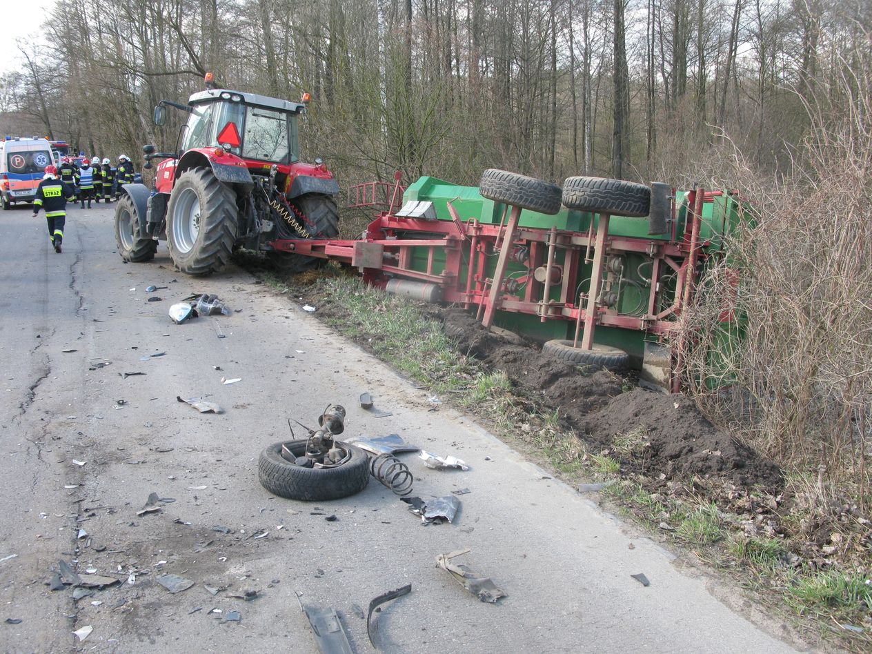 Z ustaleń policjantów, którzy pracowali na miejscu zdarzenia wynika, że kobieta kierująca osobowym seatem, na prostym odcinku drogi podczas wyprzedzania ciągnika z przyczepą nie upewniła się co do możliwości bezpiecznego wykonania tego menewru, zjechała na część jezdni przeznaczoną dla przeciwnego pasa ruchu i zderzyła się z nadjeżdżającym z przeciwka renault. W konsekwencji seat wywrócił się, a renault uderzył w przyczepę ciągnika rolniczego doprowadzając do jej wywrócenia. Kobieta kierująca seatem z obrażeniami ciała została przetransportowana helikopterem Lotniczego Pogotowia Ratunkowego do Szpitala Wojewódzkiego w Olsztynie, pozostali kierujący doznali ogólnych potłuczeń ciała i nie wymagali hospitalizacji.