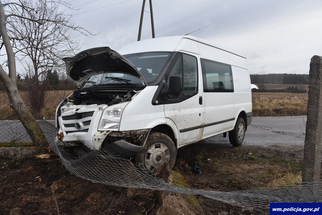 We wtorek (08.02.2022r.) w miejscowości Płośnica w powiecie działdowskim doszło do niebezpiecznego zdarzenia z udziałem pojazdu dostawczego marki Ford Transit. Siedząca za kierownicą auta mieszkanka gminy Rybno na prostym odcinku drogi najprawdopodobniej wpadła w poślizg i uderzyła w ogrodzenie pobliskiej posesji oraz w drzewo. 50-latka była trzeźwa. W samochodzie znajdowała się również 54-letnia pasażerka. Kobieta straciła przytomność i była reanimowana przez strażaków oraz ratowników medycznych. Odzyskała czynności życiowe. Obie kobiety zostały przetransportowane karetką pogotowia do szpitala w Działdowie. Na miejscu pracowały służby ratunkowe, strażacy, ratownicy medyczni, policjanci ruchu drogowego oraz grupa dochodzeniowo-śledcza wraz z technikiem kryminalistyki.